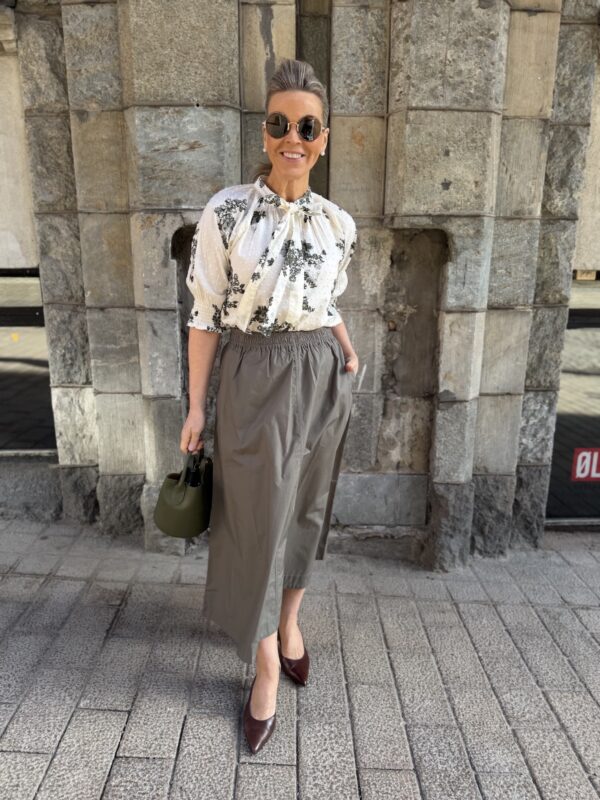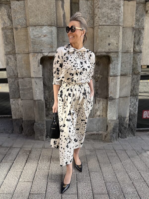 100% puuvillaiset kukka-asut eli paita ja midihame yhdessä ja erikseen stailattuina.