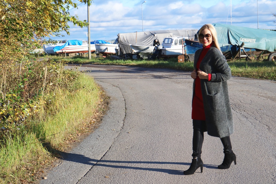 Ehdottomasti harmaa pitkä neuletakki, niin kaunis 😉