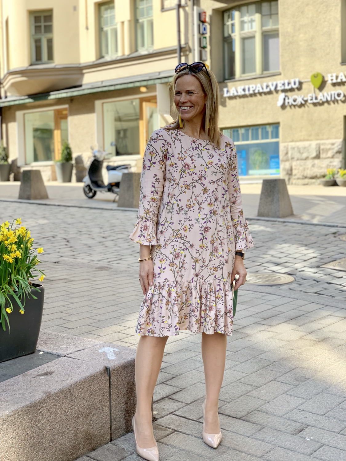 Mainitsin eilisessä postauksessa siitä, miten erilaisilla kengillä saa aikaiseksi eri fiiliksisiä asuja. Jos avokkaiden korko on matalempi, ei useinkaan saa asuun tarpeeksi juhlavuutta. Itse kokeilin Lyra mekkoon keltaisia sling backejä eli eilisen postauksen kenkiä. Ne sopivat värinsä ja mallinsa puolesta mekkoon loistavasti, mutta itse jäin kaipaamaan tarpeeksi juhlavaa fiilistä. Tämä tietysti johtuu myös siitä, että minä olen ”korkkarinainen”. Rakastan korkeita korkoja ja puen ne aina juhlaan.