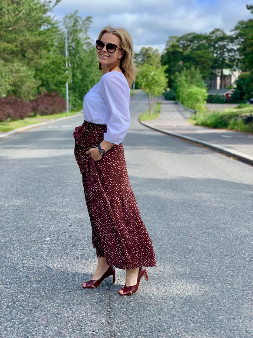 - Sharon hame € 119,95 koot 34-42 (minulla on päälläni koko 34 eli hameesta voi ottaa yhden koon pienemmän kuin normaalisti)