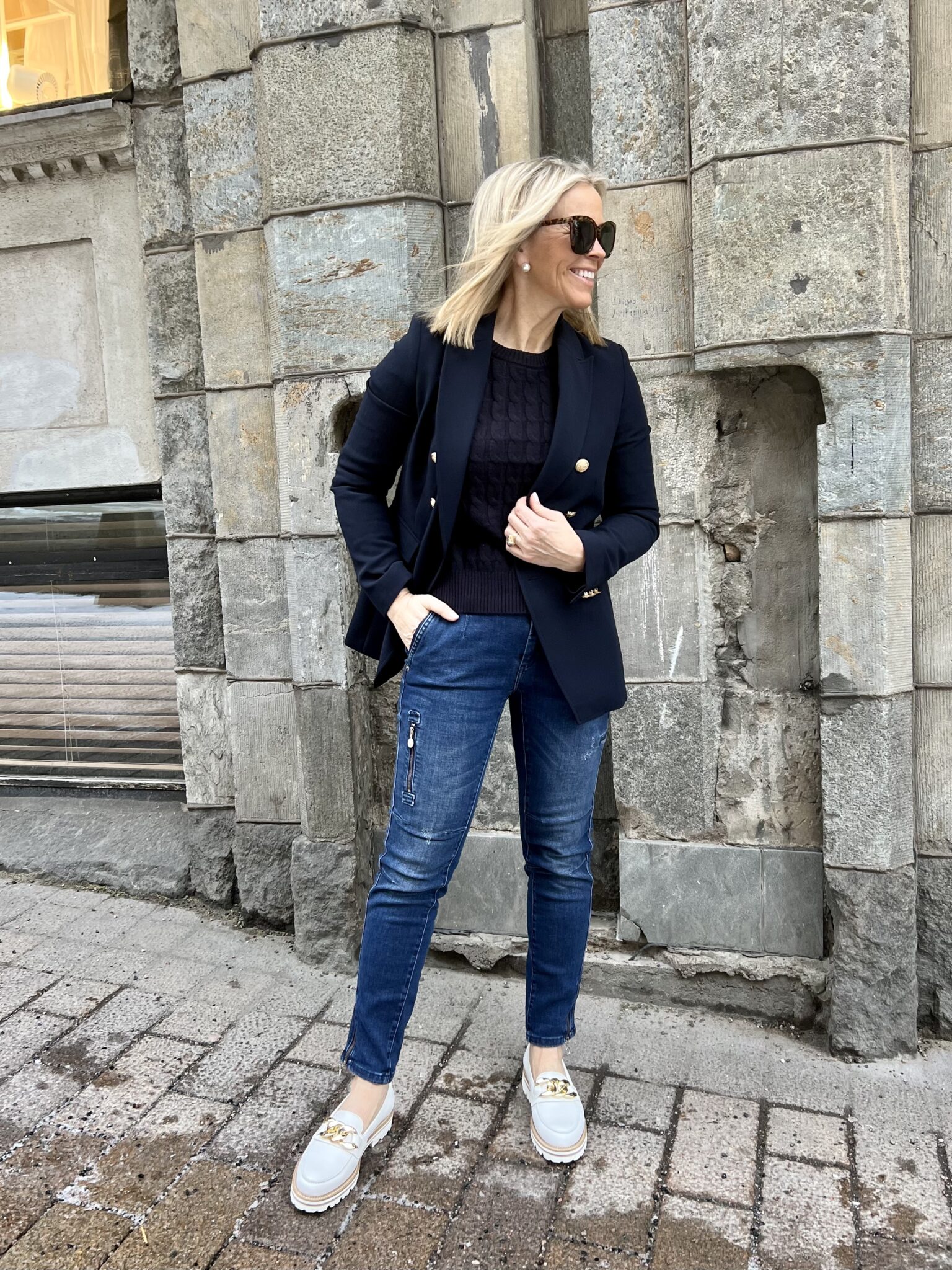 Hei Marianne ja kiitos kommentistasi 🙂 Farkut ja lettineule ovat aivan ihania, ovat minun matka-asuni Espanjaan. Jakku on kerrassaan style, kultaisilla napeilla. Kiitos kun tykkäsit! Kata