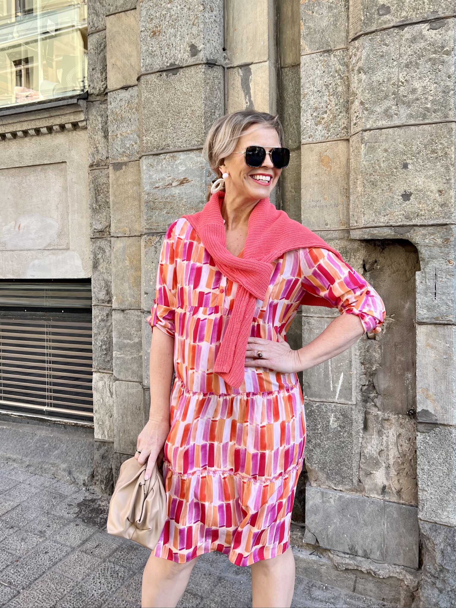 Äitienpäivän kunniaksi ilahdutamme teitä värikkäillä asuilla ja värikkäällä videolla. Mietimme, että nämä vaatteet ovat kuin värikäs kukkakimppu, jonka haluaisimme ojentaa kaikille äidille. Meidän ”vaatekukkakimpusta” löytyy pinkkiä, oranssia ja keltaista. Toivottavasti kaikilla äideillä on tänään ihana päivä ja jokainen viettää oman näköistä äitienpäivää. Minun äitienpäivä koostuu tänään omasta perheestä ja heidän tekemästä lounaasta. Minulle on juhlaa, kun saan istahtaa valmiiseen ruokapöytään ja syödä hyvää ruokaa jälkkärin kera.