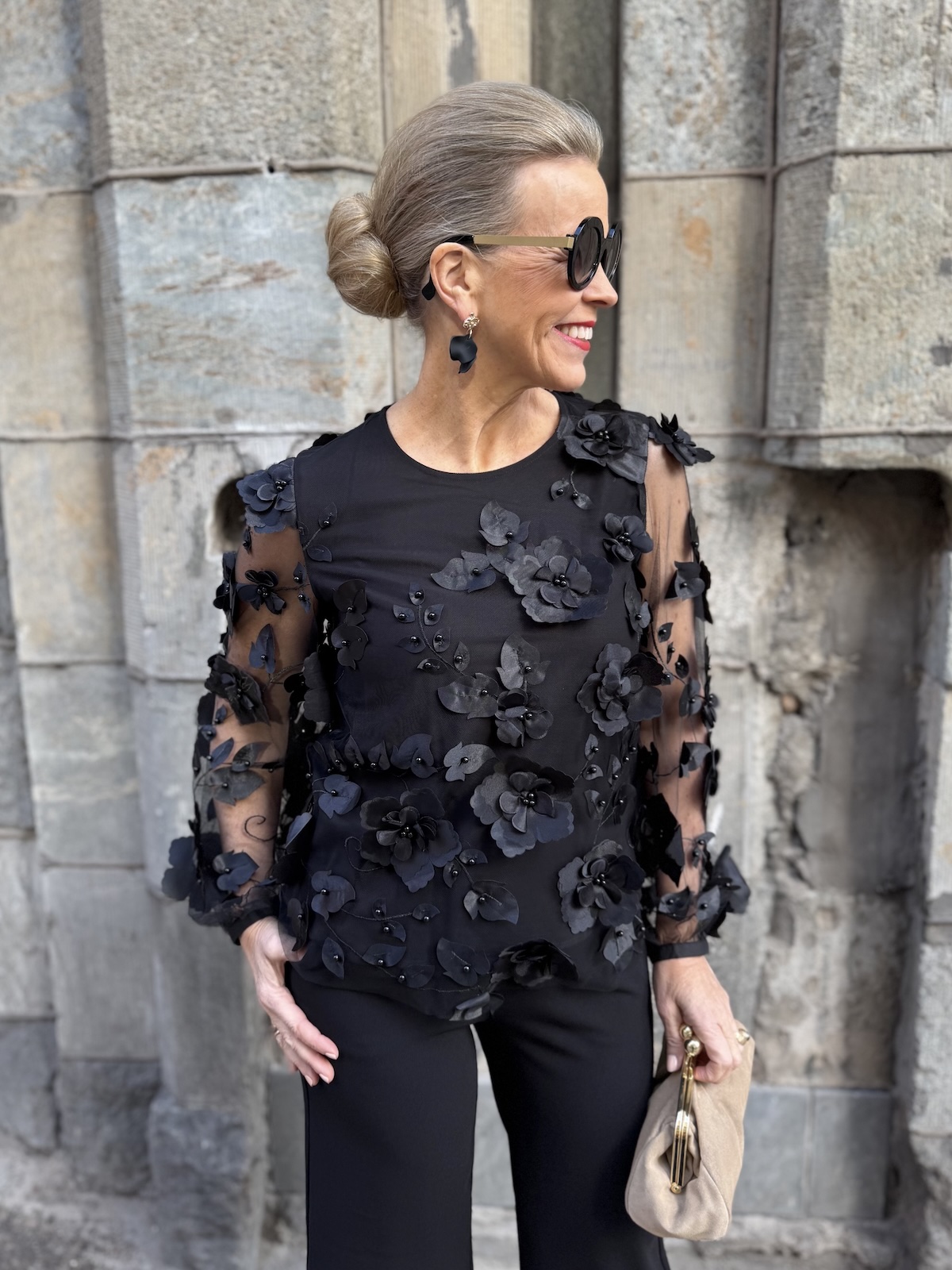 Minulla oli jouluaattona päällä musta silkkipusero isolla rusetilla kauluksessa, musta nahkahame ja jakkuna toimi pieni tekoturkisjakku. Minun piti pukea ylleni punainen Violet mekko, mutta unohdin sen liikkeeseen. Meillä on tapana käydä mieheni kanssa hieronnassa kun liike suljetaan aaton aattona. Tänä vuonna olimme 1,5 tunnin bambukeppi hieronnassa ja olin sen jälkeen ihan ”pää pyörällä” joten puolet tavaroista jäi liikkeeseen kun lähdimme. Onneksi vaatekaapista löytyy näitä klassikoita, jotka toimivat aina, joten asukriisiä ei tarvinnut kehittää, mutta olisihan se punainen Violet mekko ollut ihana.