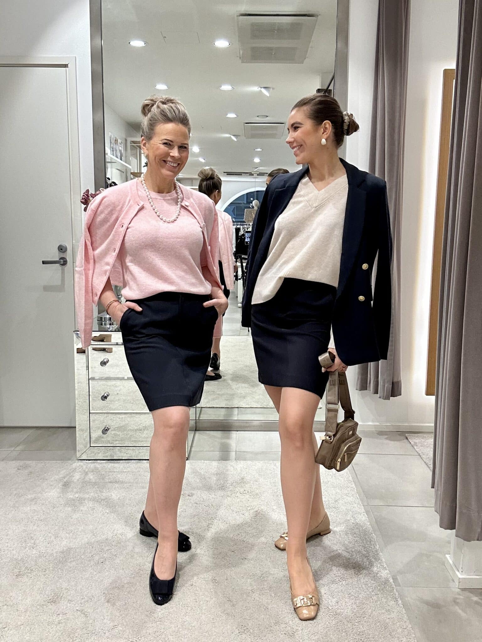Työvaatteita äidin ja tyttären tyyliin, voisi myös olla tämän blogijulkaisun otsikko. Otimme yhden värin työvaatteiden pääväriksi ja se on tummansininen. Minä luen vaatekaapin pääväriksi aina tummansinisen ja mustan. Moni suosii mustaa varsinkin talvella ja kevään tullen he vaihtavat päävärikseen tummansinisen. Mutta toki on myös aina mustaan väriin vannovia sekä aina tummansiniseen väriin vannovia.