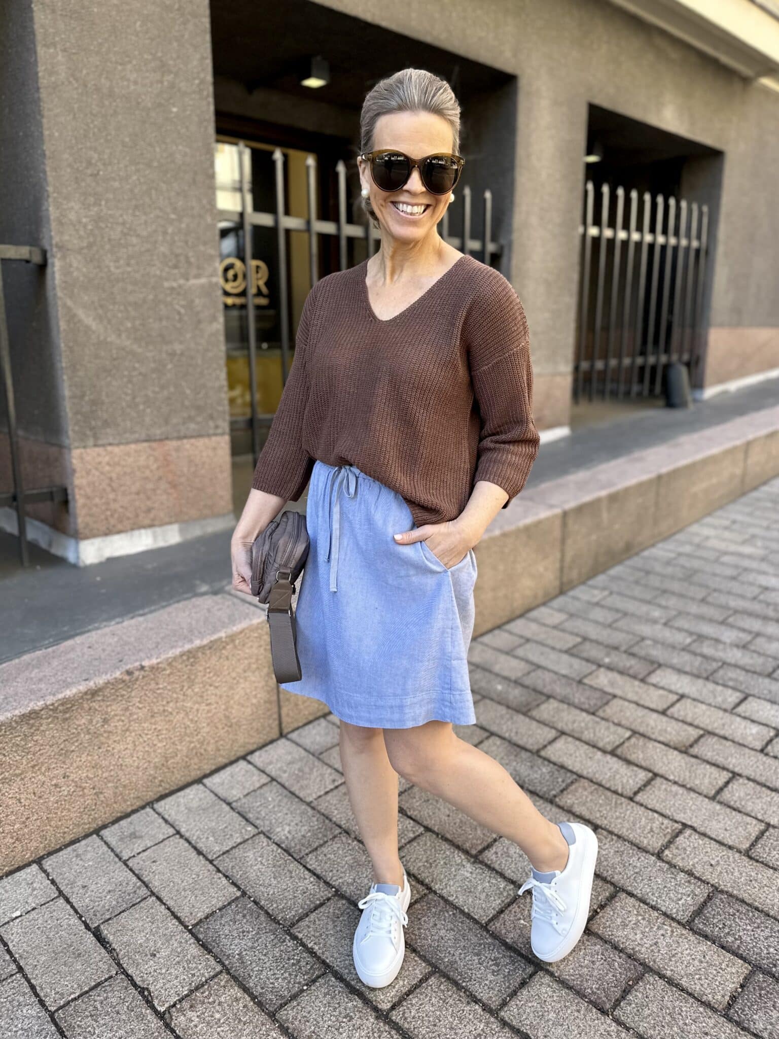 Rennon kesäinen asu; Kei hame yhdistettynä pellavaneuleeseen toimii todella hyvin.
