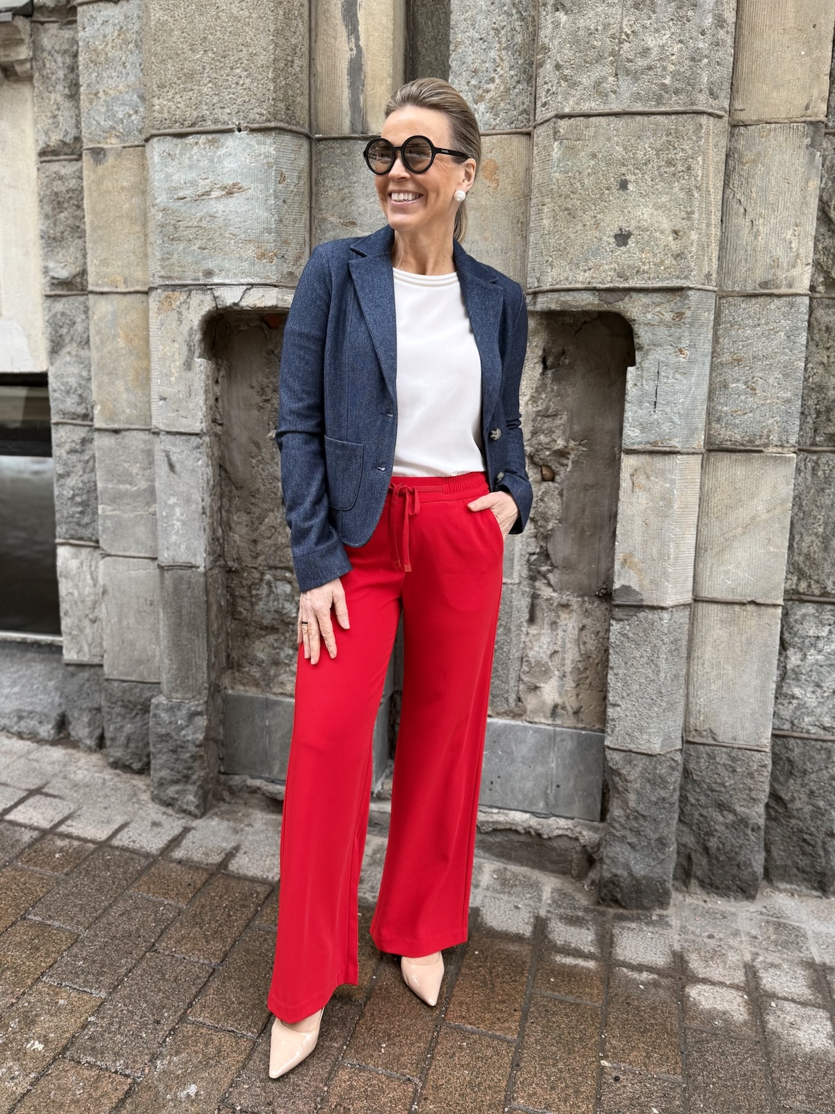 Kun pellavajakun pukee harteille, tulee trikoisesta mekkoasusta heti juhlavampi.