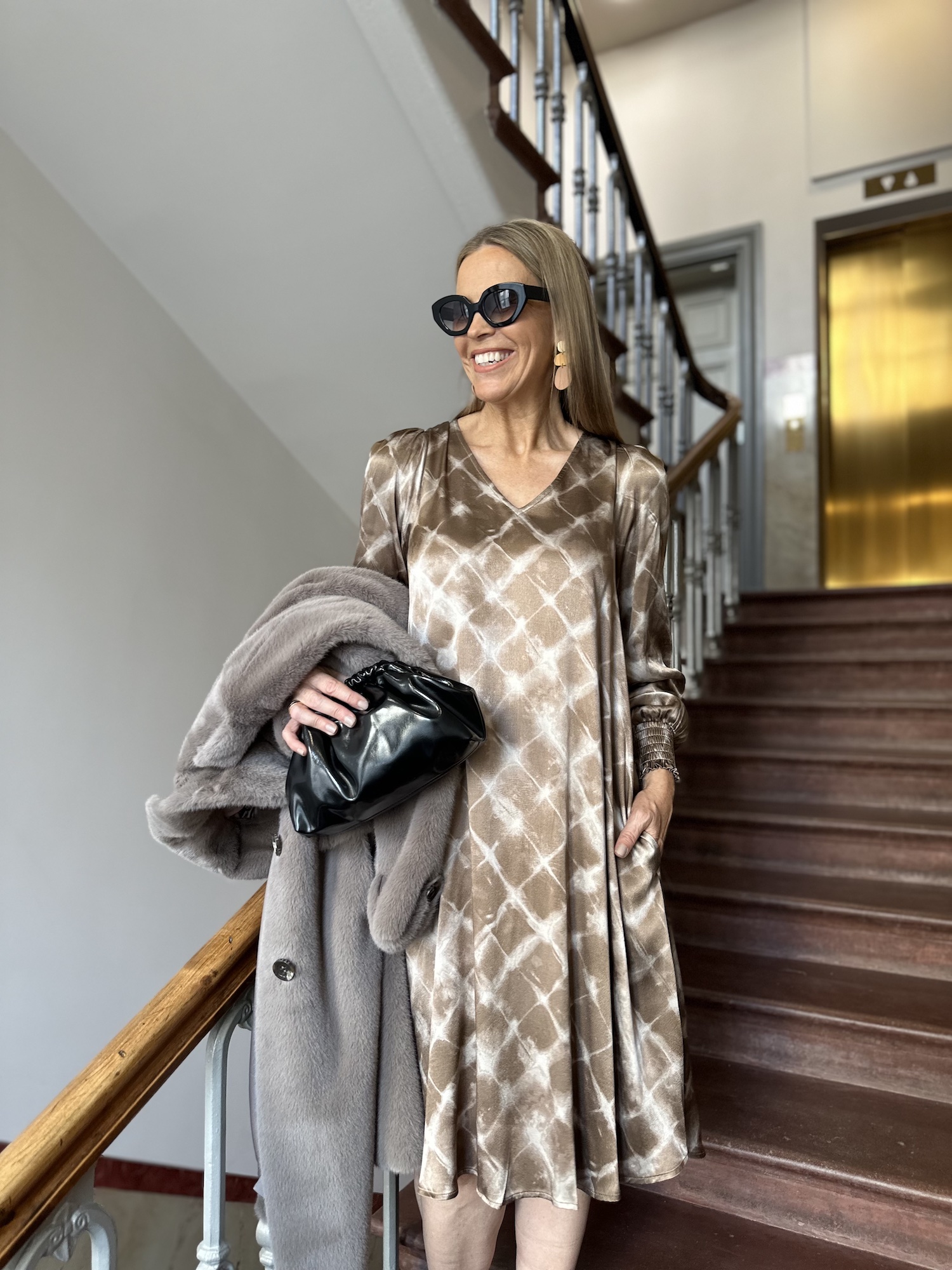 Toffee väri on hienostunut ja viskoosissa väri välkehtii ja valaisee. Huikea väri, mitä en muista vähään aikaan olleen vaatteissa.