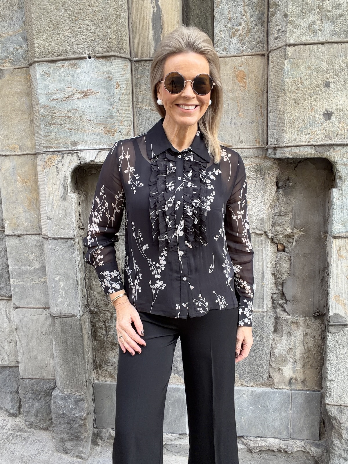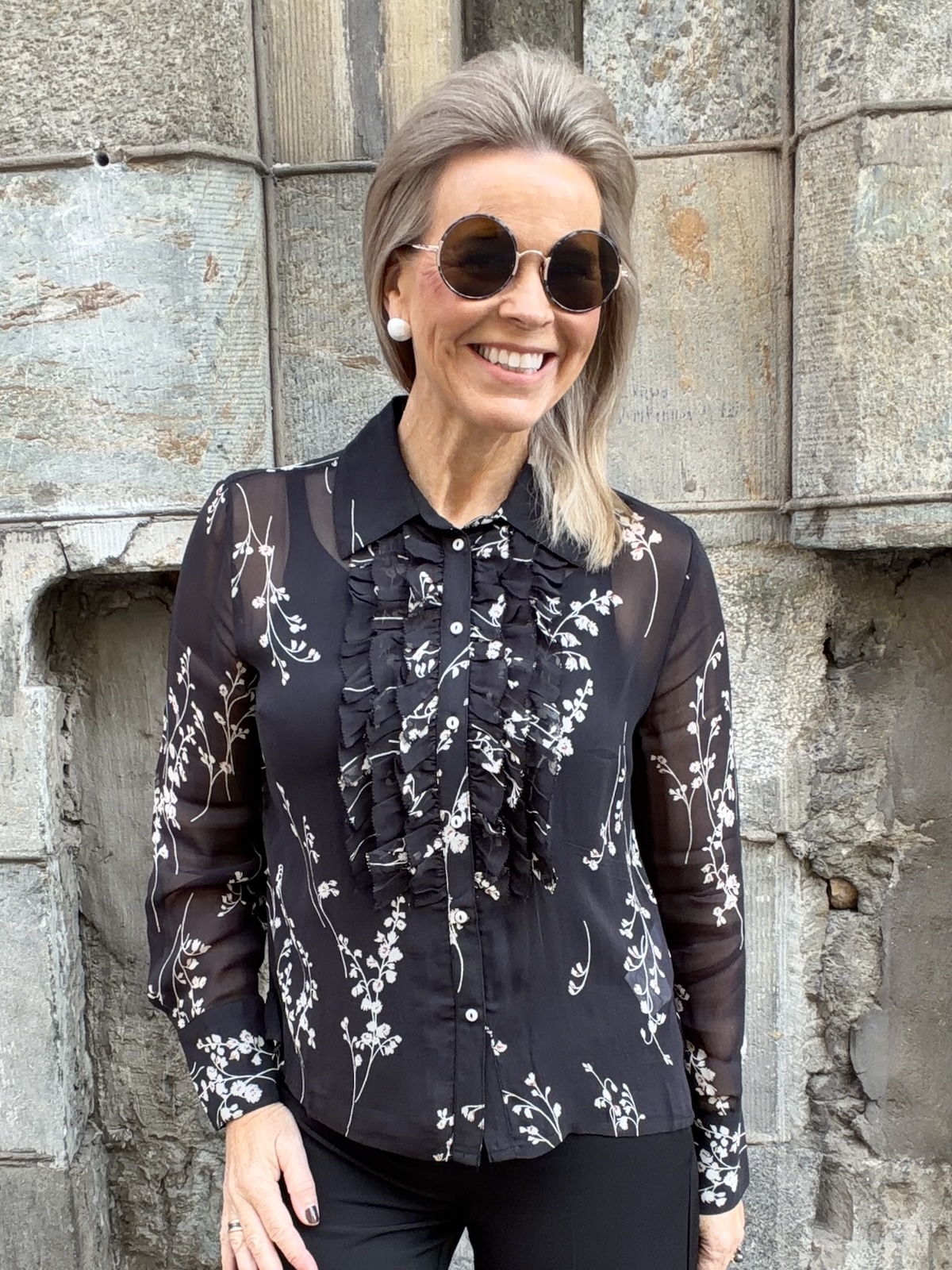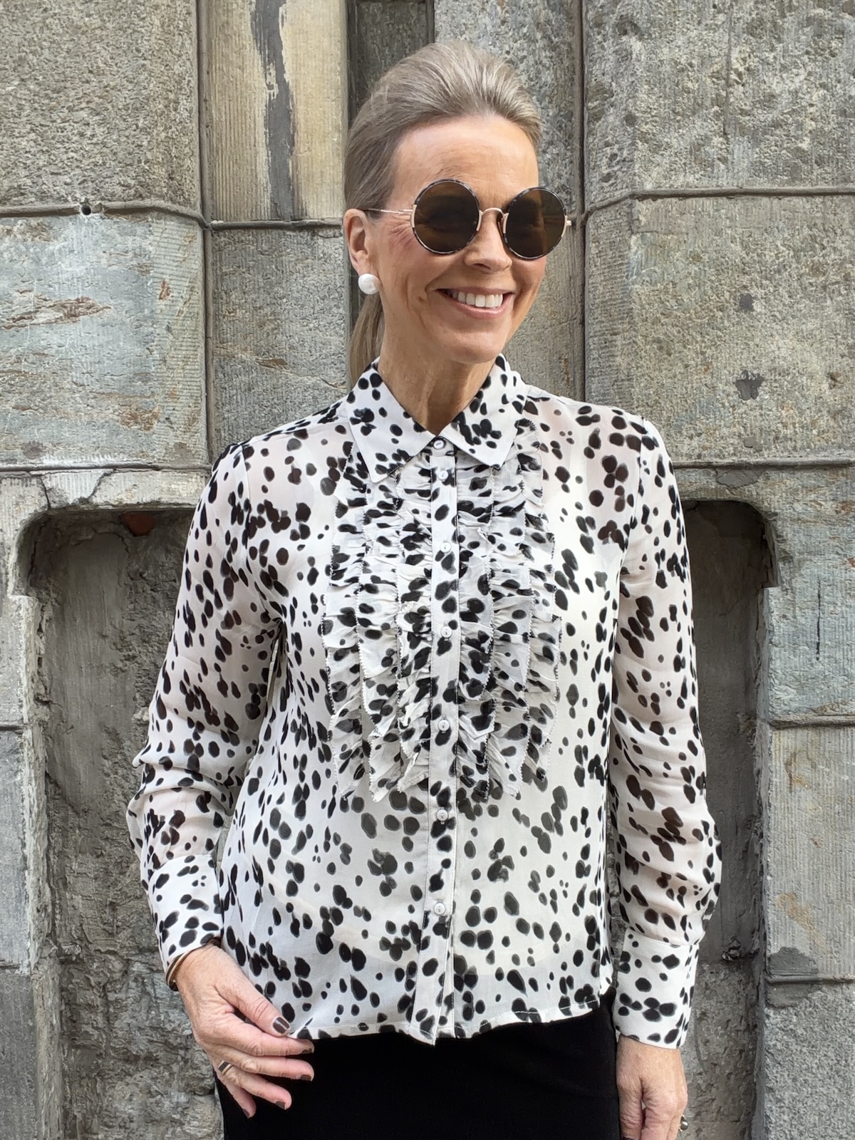 Vanora on kaunis viskoosipaita. Paidassa on kaulukset ja edessä on täysin avattavat napit. Nappilistan reunassa on pienet fyrrykantit, noin vyötärön kohdalle. Hihat ovat täyspitkät ja hihansuissa on rannekkeet. Malliltaan paita on suora, selässä on laskos ja paita ylettyy lonkkaluiden alapuolelle. Minulla on paidasta päällä koko 34.