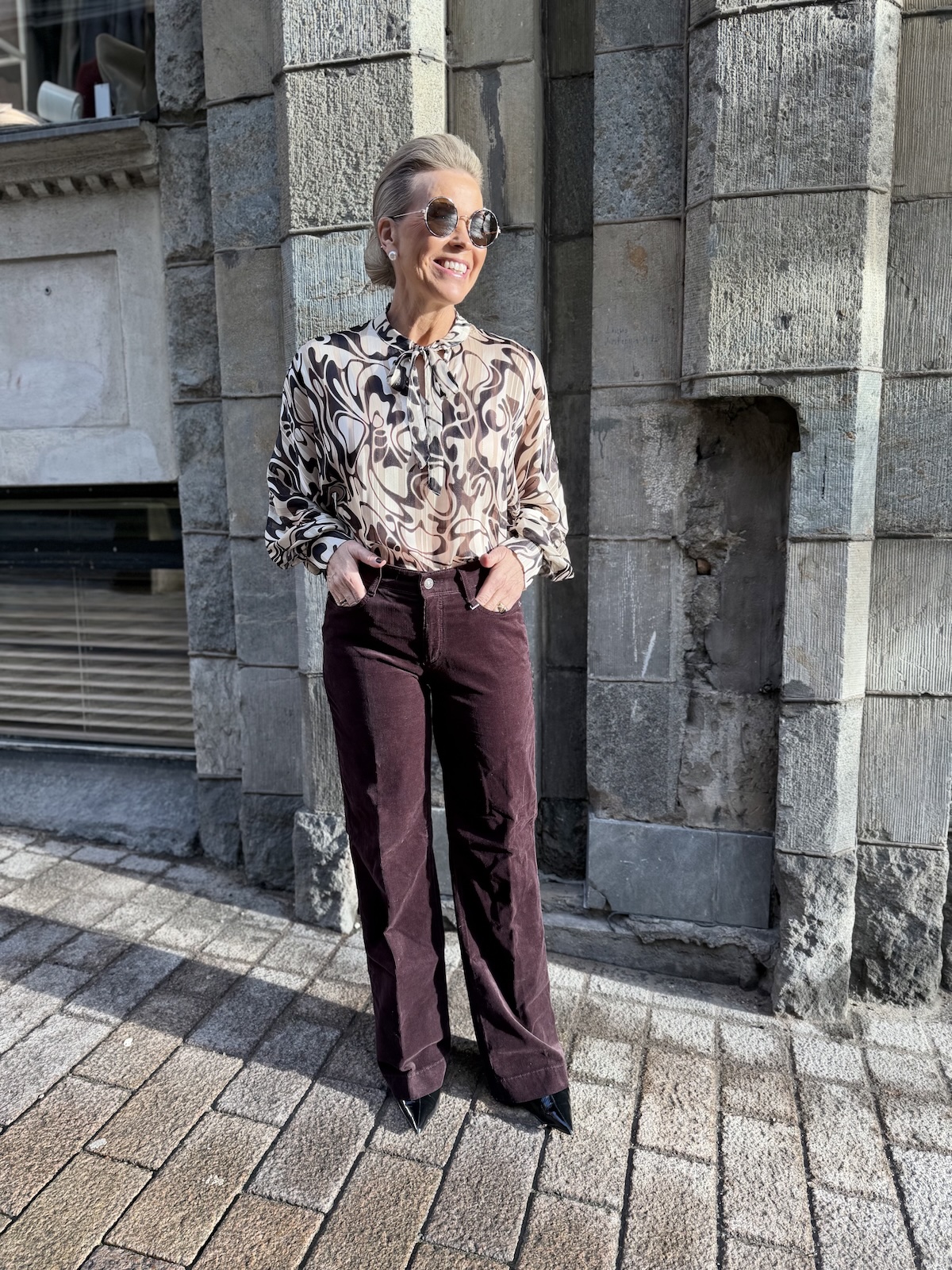 Samettihousut ovat lämpöiset ja mukavat. Näissä housuissa on hyvän mallin lisäksi plussana ihana väri. Hyvin kuvailet Kata vaatteet sekö esittelet ne ensiluokkaisesti. Pusero nappaa tosiaan hyvin värin sammareista sekä sointuu hyvin yhteen.