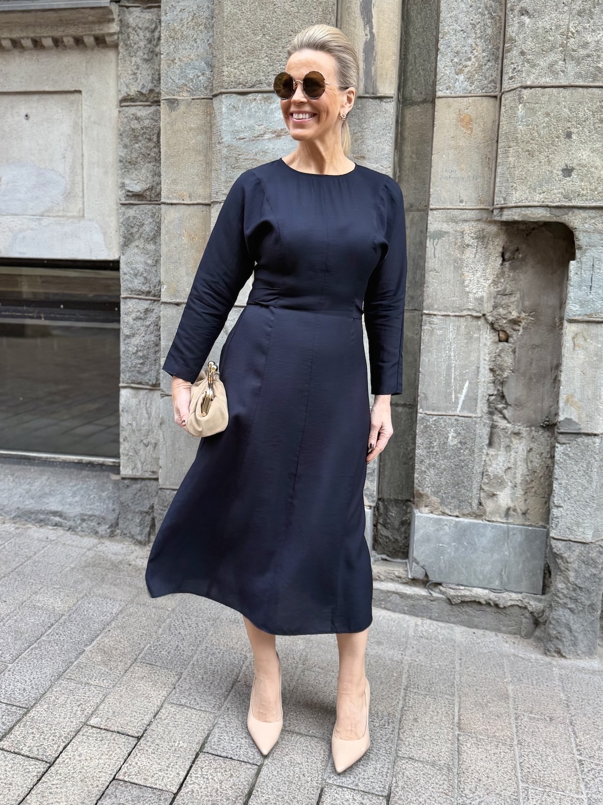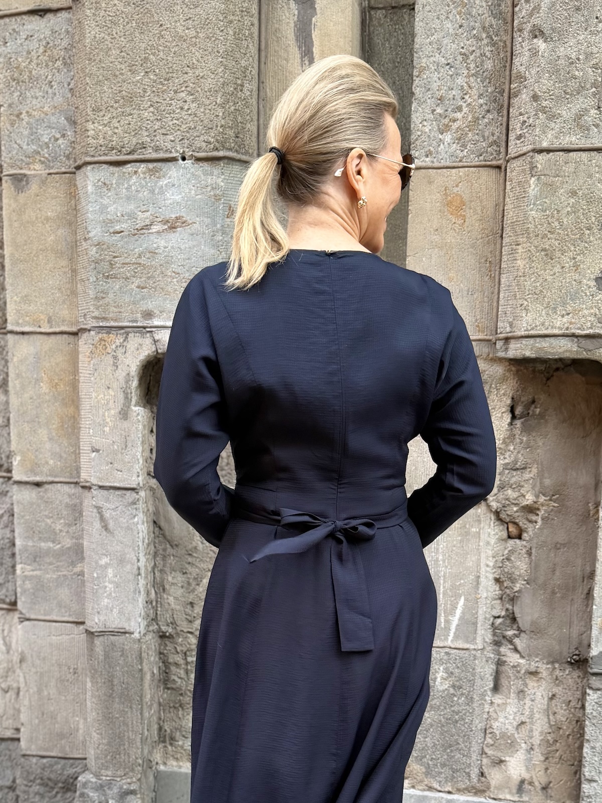 Adelia on naisellinen, ajaton ja tyylikäs mekko. Mekossa on O-kaula-aukko ja selkäpuolella on pitkä vetoketju. Hihat kapenevat ranteita kohden ja hihojen kainaloissa on tilaa, koska mekossa ei ole istutettuja hihoja. Mekko kapenee vyötäröä kohden, missä on nauhat ja poikkileikkaus. Vyötärön jälkeen mekko levenee alaspäin ja loppuu reilusti polvien alapuolelle. Mekko ei ole super pitkä eli se soveltuu myös lyhkäisemmille naisille. Mekon vyötäröllä on leveät nauhat jotka voi solmia eteen tai taakse. Minulla on mekosta päällä koko 34.