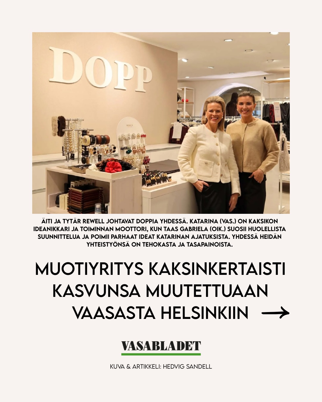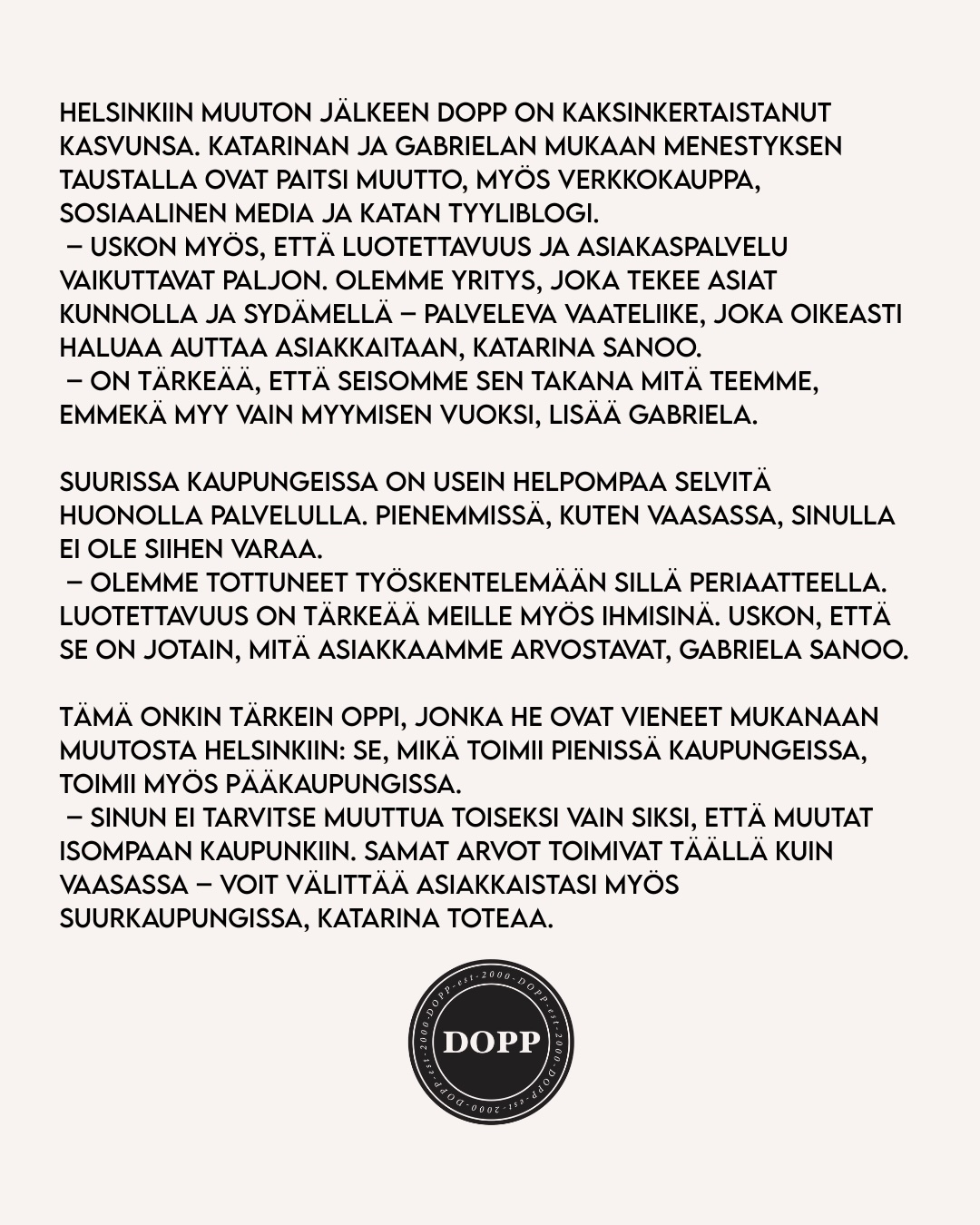 Arvostan Katan sekä Gabin yrittäjyyttä. Olette energinen tehokaksikko ja teillä on super tiimi Doppissa. Dopp on vaan best!