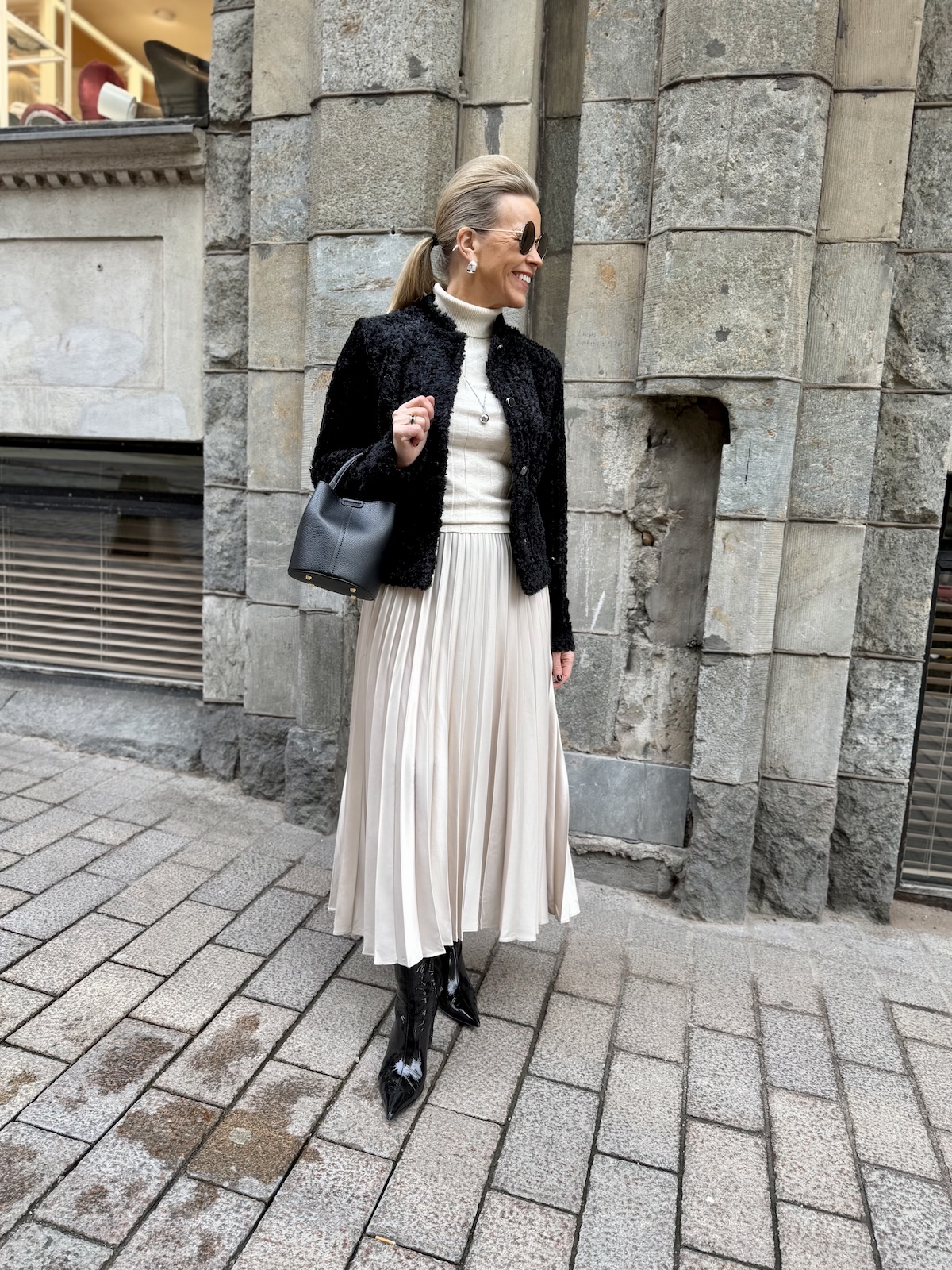 Tykkään erityisesti vaaleasta alaosasta tumman yläosan kanssa; valoisan elegantti näin talvella.