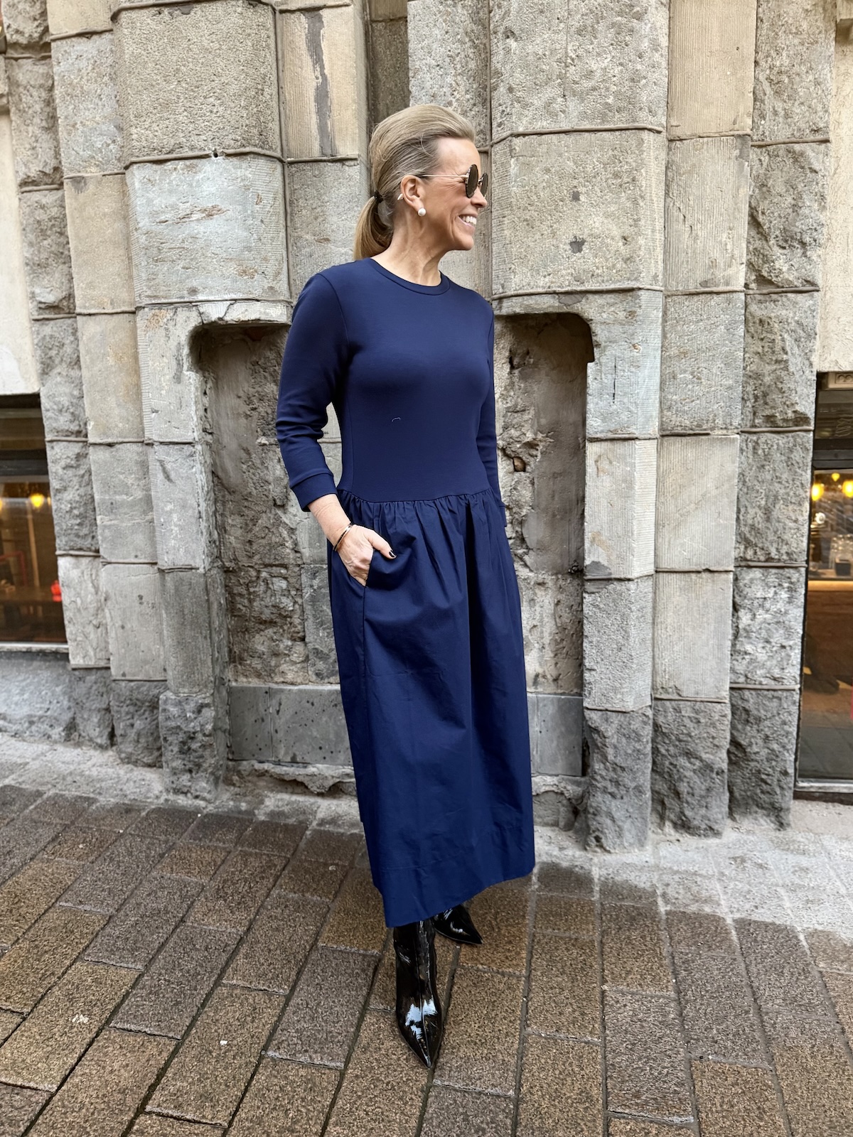 Ihana Mira midimekko saapui nyt keskisinisenä. Meiltähän löytyy Mira midimekosta jo värit sandygrey ja musta sekä ihana beige. Ja nyt neljäs väri on tämä sininen.