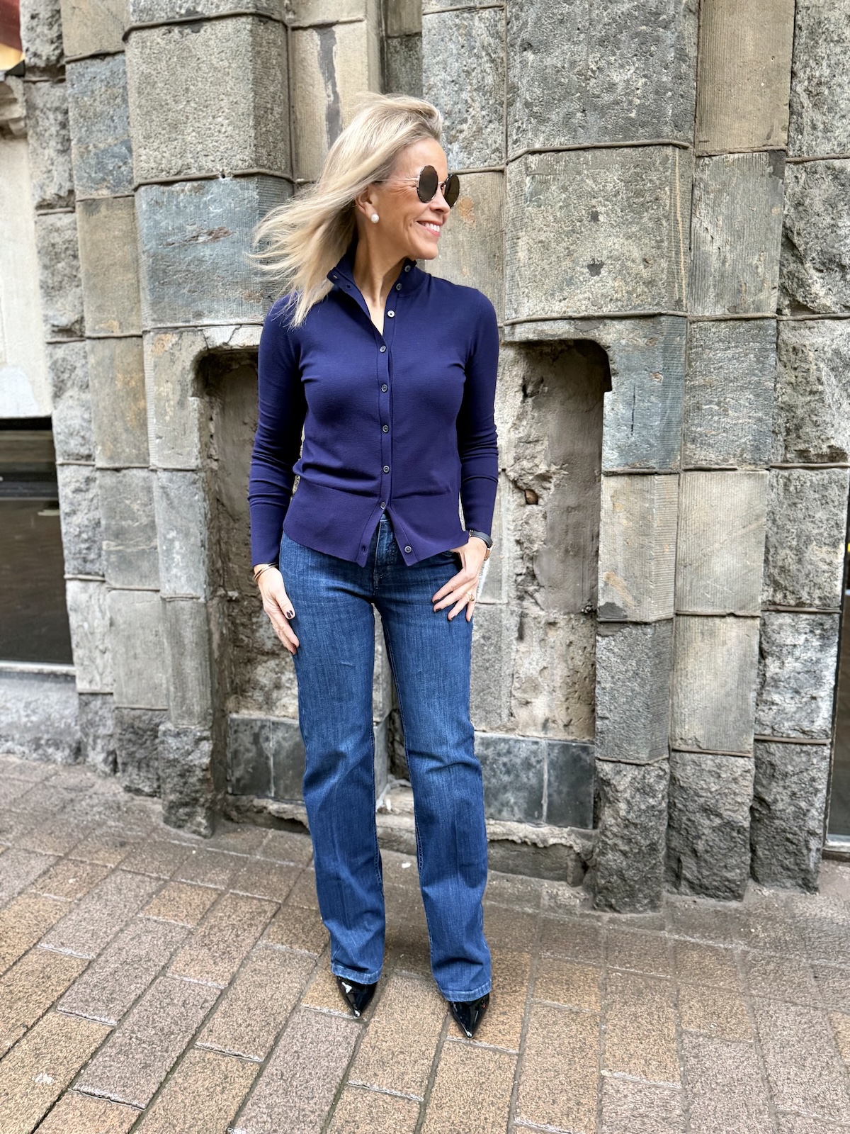 Tyylikkäät neuletakit ja Laura farkut yhdessä luovat rennon siistin lookin.