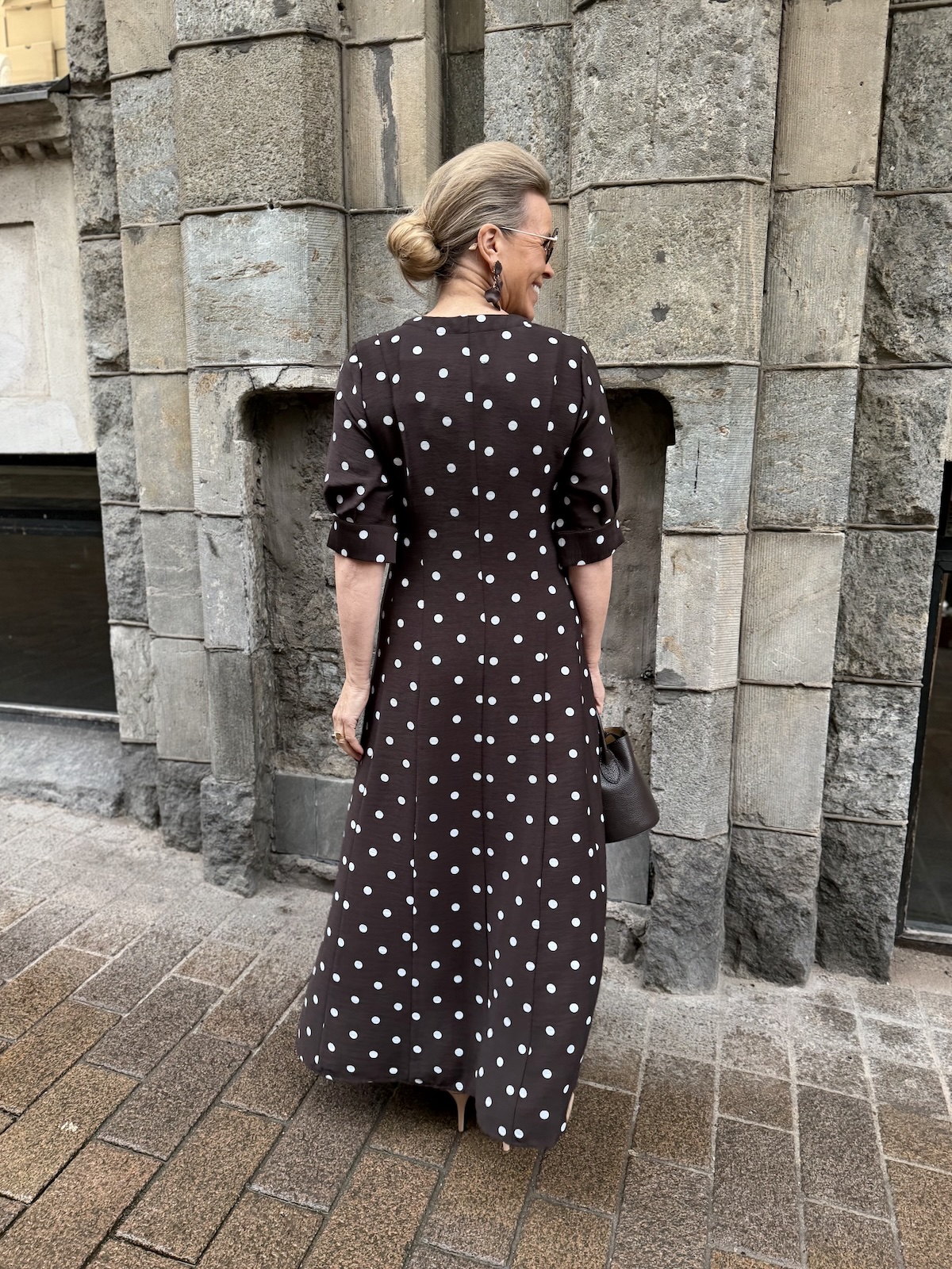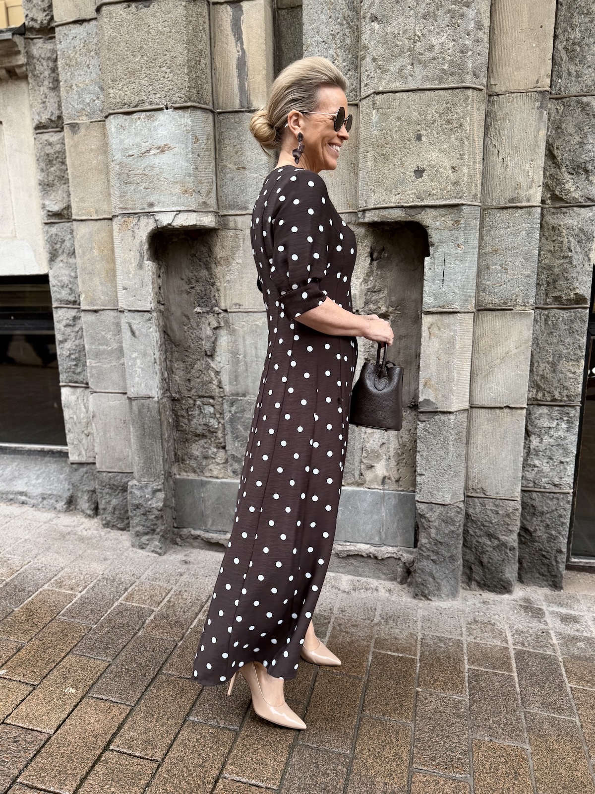 Ihanaa, että ruskea väri jatkaa mallistoissa. Tämä ruskea mekko on upea, hyvä leikkaus, kauniit hihat, v-kaula-aukko ja täydellinen helman pituus. Tällä mekolla liihotetaan kevyesti eteenpäin.