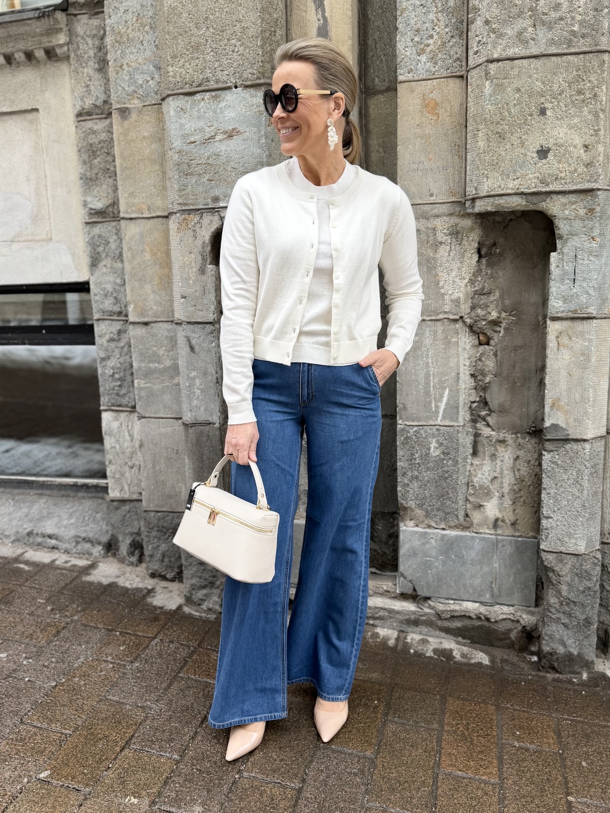 Ellamarie on kaunis ja tyylikäs ja aivan ihana iholla oleva neuletakki. Neuletakki on klassisen mallinen sekä lyhyehkö eli se ylettyy lonkkaluiden kohdalle. Neuletakin hihansuissa ja helmassa on resorit. Neuletakin voi yhdistää saman sarjan Everlotta neuleeseen, jolloin asusta saa tyylikkään twinsetin. Minulla on neuletakista päällä koko S.