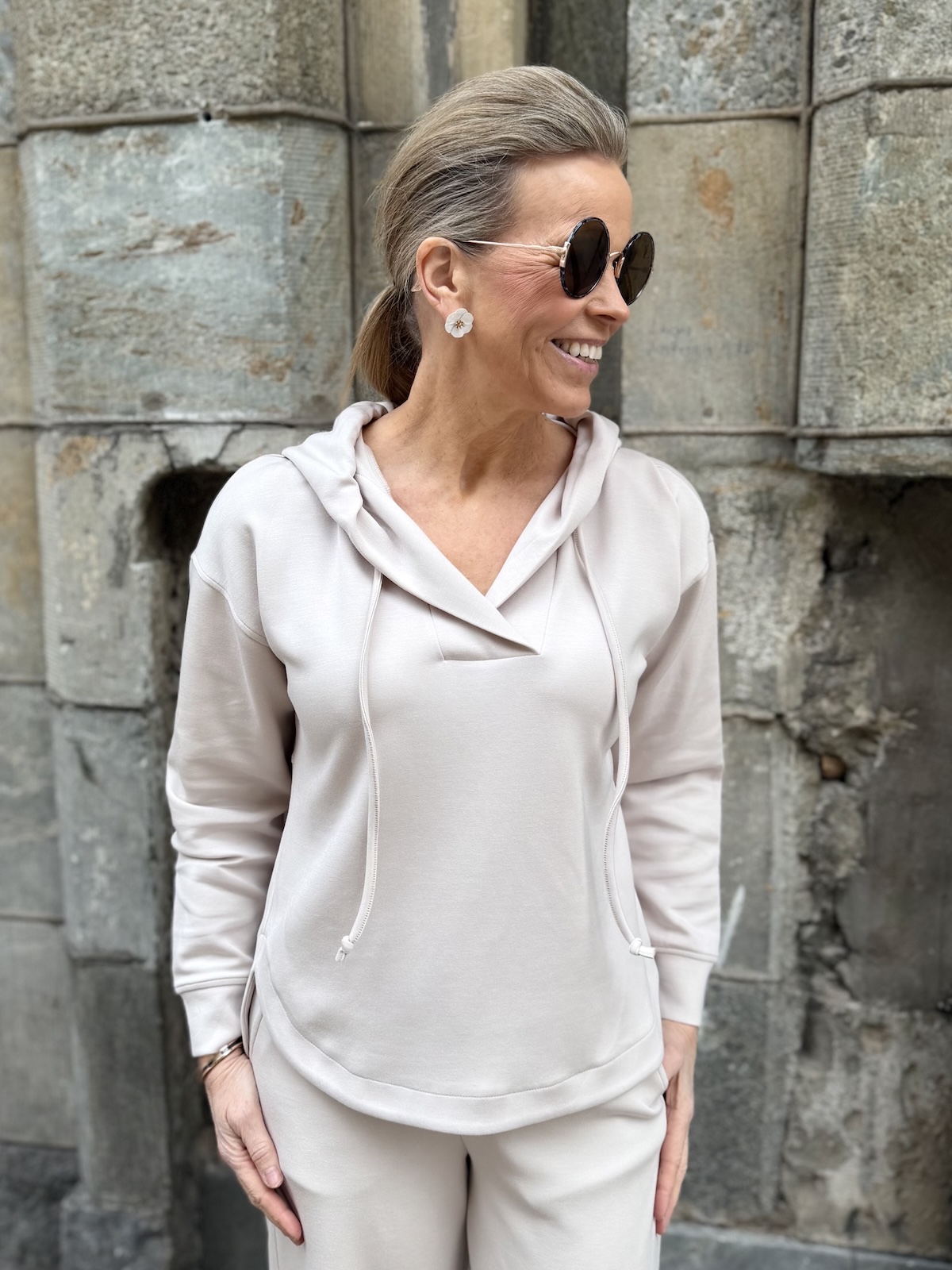 Simi Vincent sarjan huppari on rento, mutta tyylikäs. Hupparissa on tosiaan huppu ja hupun reunassa on nauhat. Edessä on V-aukko, jossa on leveä kantti reunassa. Hihat ovat täyspitkät ja hihansuissa on resorit. Huppari on malliltaan suora ja se on edestä hieman lyhkäisempi kuin takaa. Takaa se ylettyy pepun alapuolelle. Minulla on hupparista päällä koko XS. Huppari on reilua kokoa. Hupparia ei valitettavasti ole saatavilla lisää.
