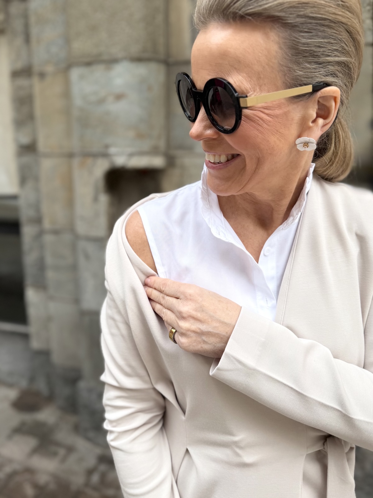 Videolla minulla on kietaisupaita Aida midihameen kanssa, mutta on ihana myös Gincette housujen kanssa
