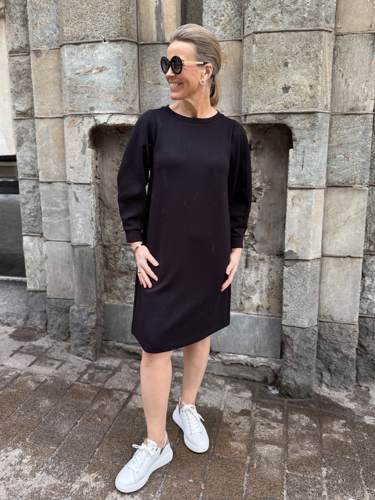 Simi Vincent on aivan ihana mekko. Mekko on monikäyttöinen ja aina siisti! Mekossa on O-kaula-aukko ja hihat ovat hieman pussimaiset ja ne ylettyvät noin ranteiden kohdalle. Mekko on istuva rinnan kohdalta jonka jälkeen se levenee kevyesti alaspäin ja loppuu polvien yläpuolelle. Minulla on mekosta päällä koko XS.