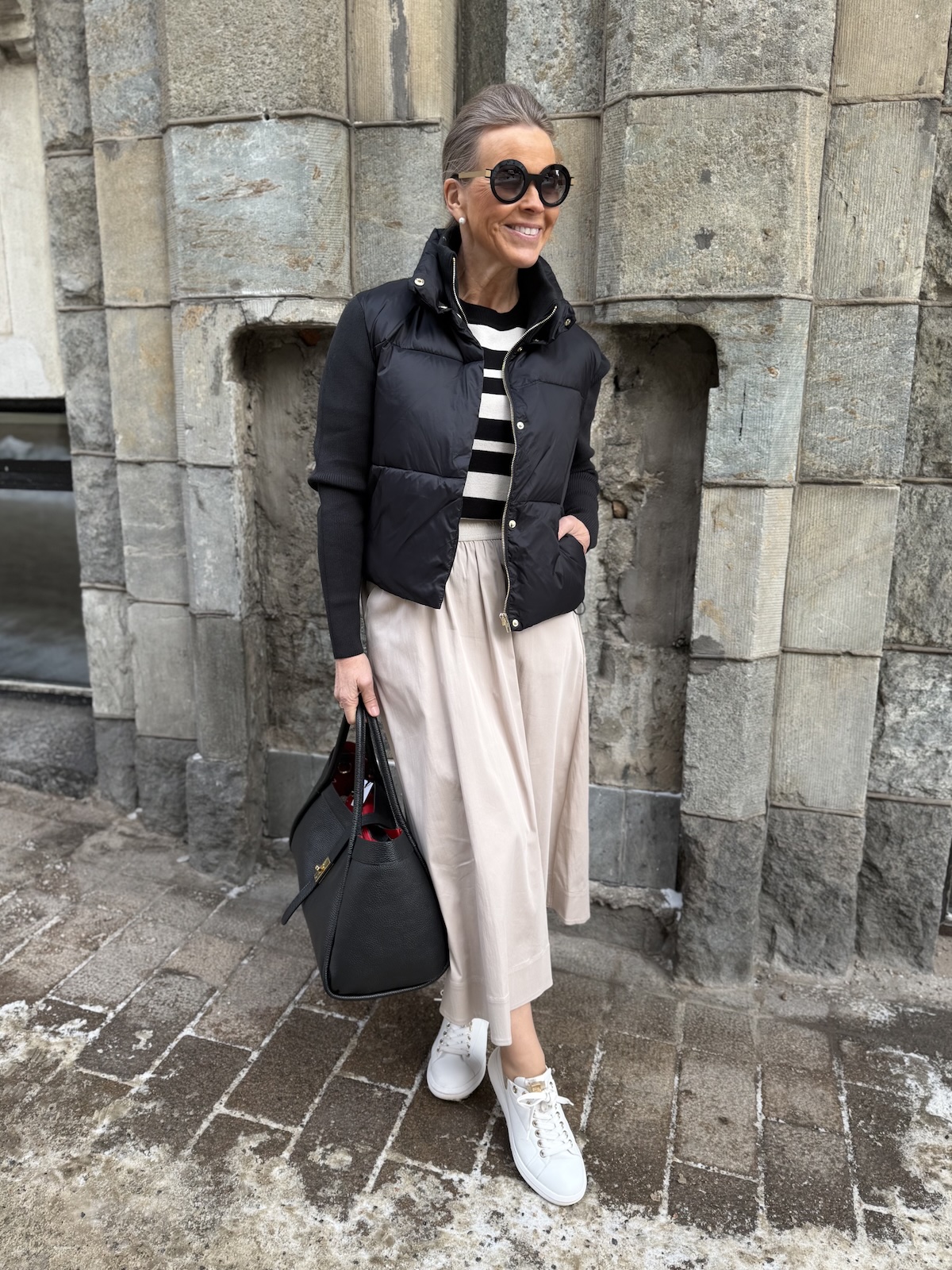 Mila on viehättävä midihame, joka ei ole liian pitkä eli se soveltuu myös lyhkäisemmille naisille. Hameessa on leveä ja joustava kuminauha vyötärö. Kuminauha vyötärössä on sävy sävyyn Milano-teksti eli tuotemerkin teksti. Hameen sivuissa on taskut ja hame levenee kevyesti alaspäin. Minulla on hameesta päällä koko 34.