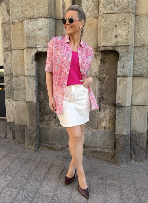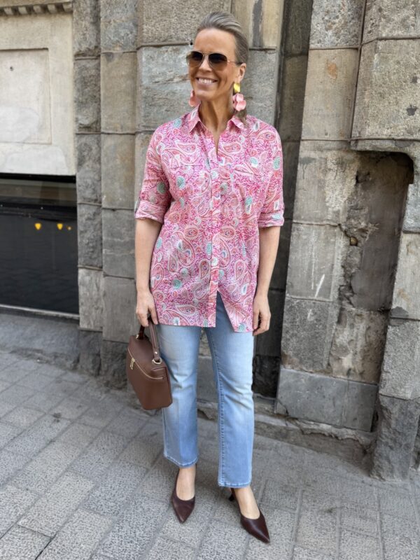 Moni Neda paita kukkakirjailulla; vaaleansininen