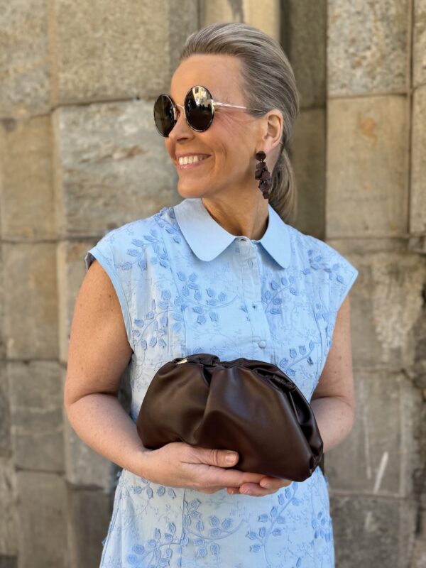 Moni Neda kauluksellinen midimekko; vaaleansininen