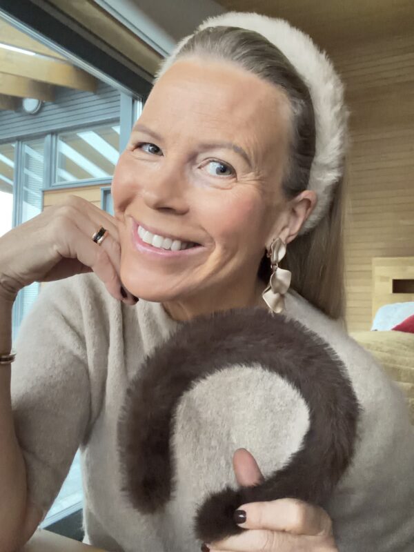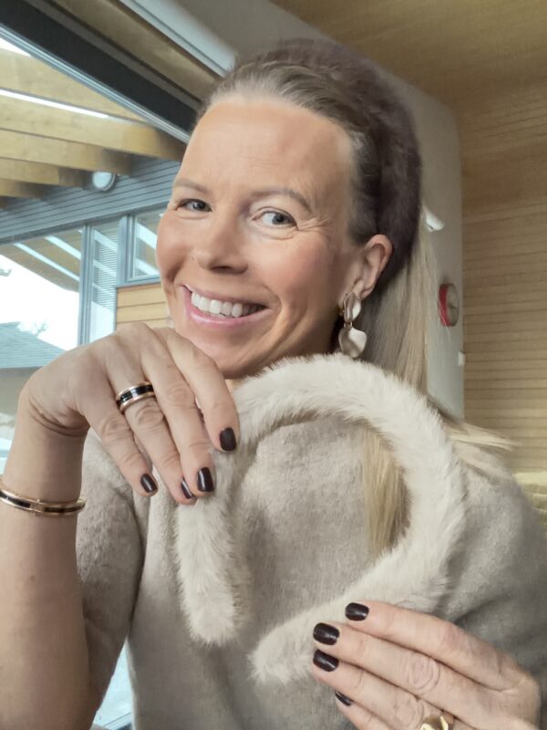 Holiday neuletakki helmiruseteilla; luonnonvaalea