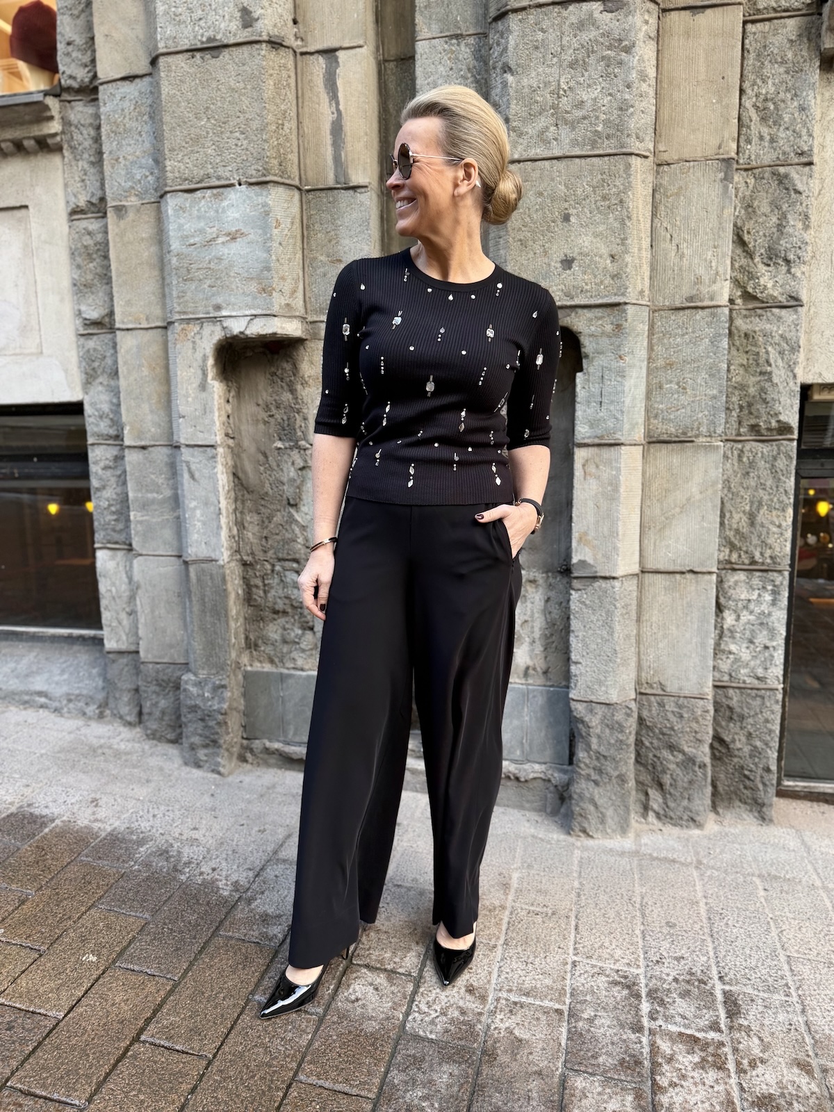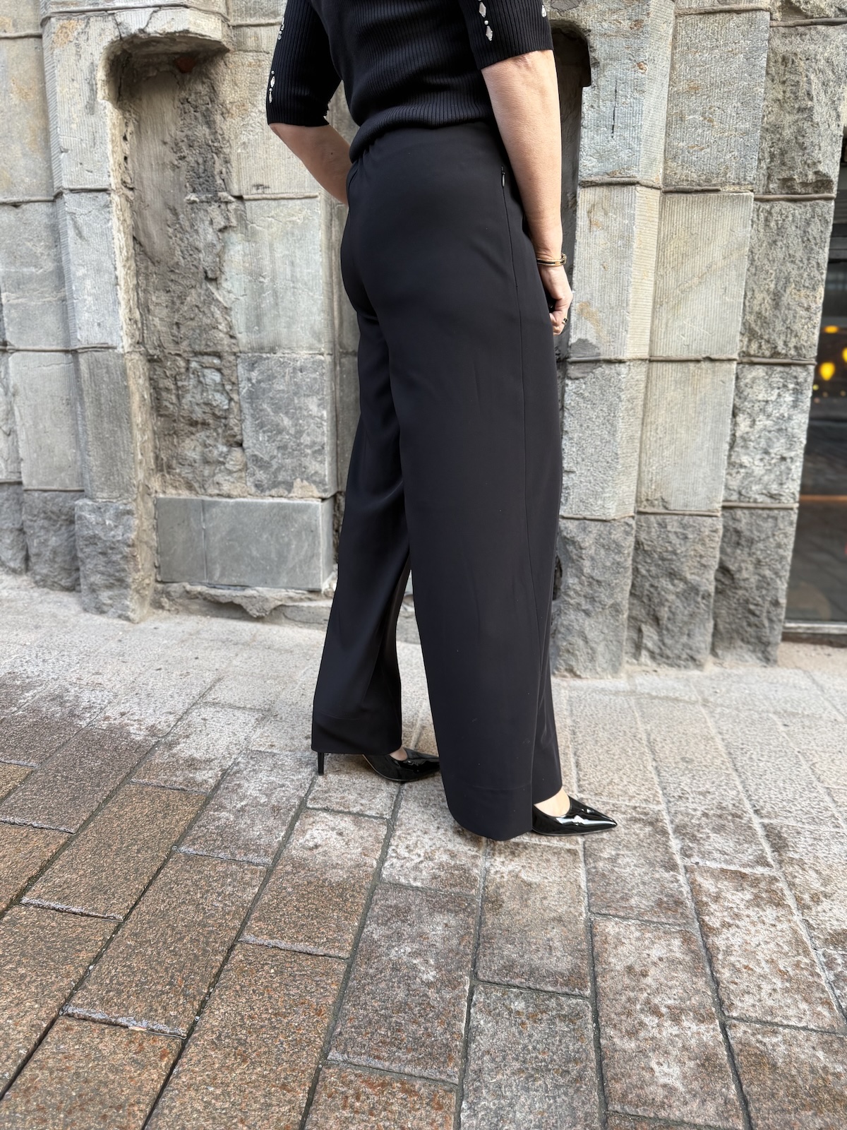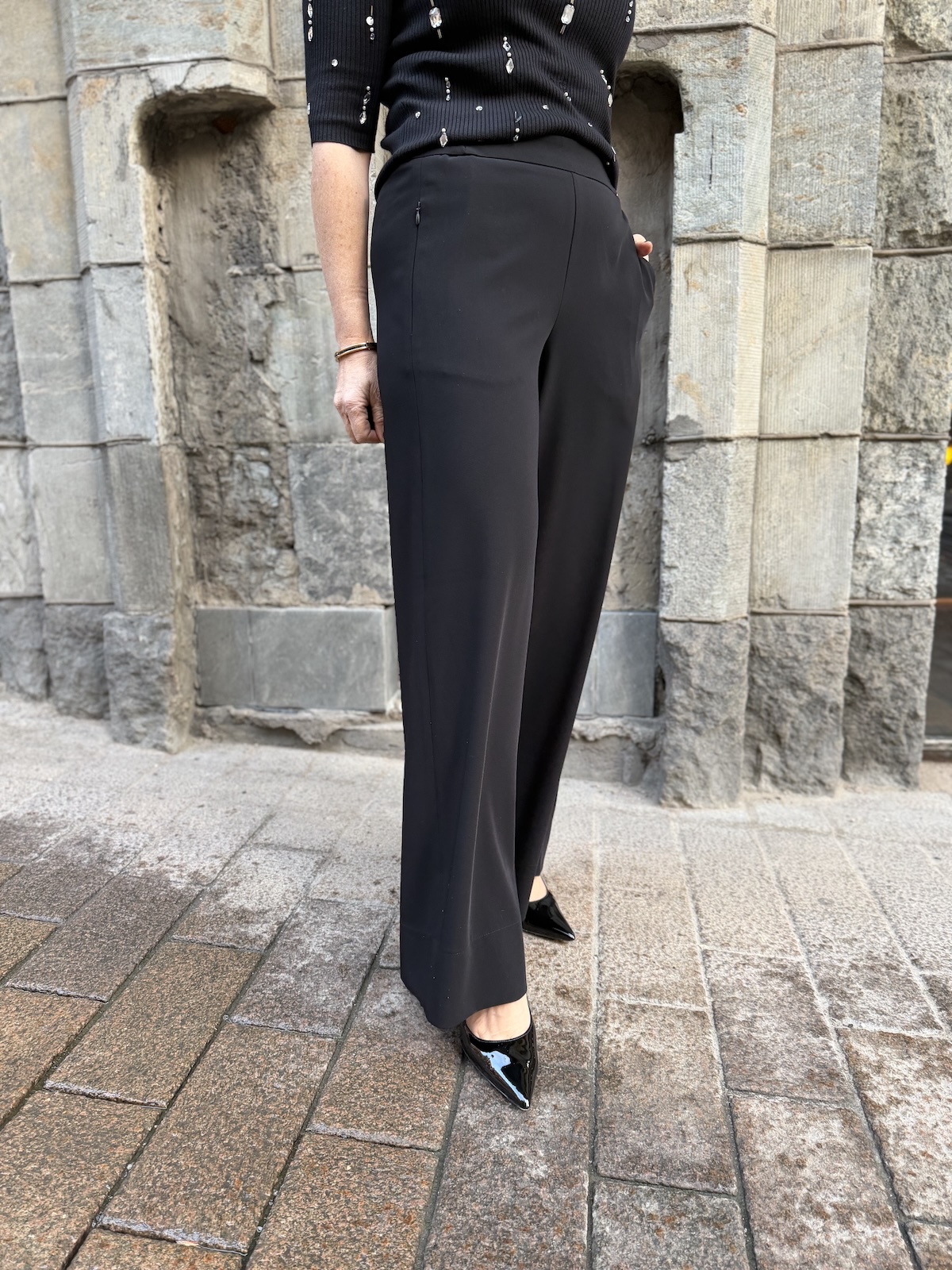 Coralie leveälahkeiset housut 30″ ja 32″; mustat