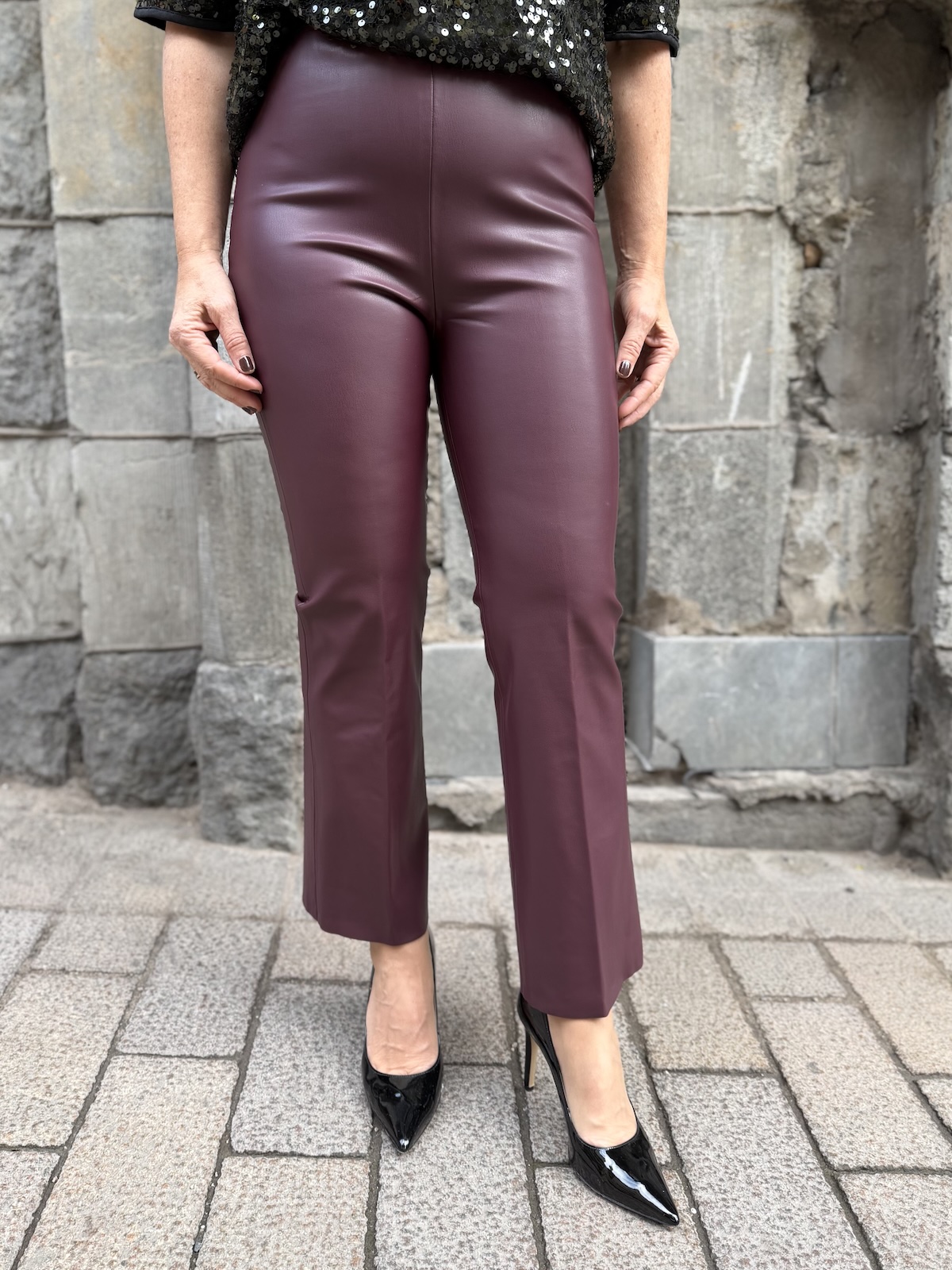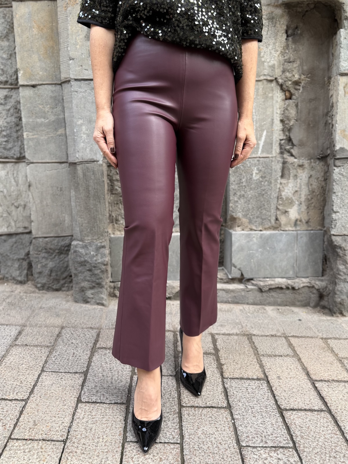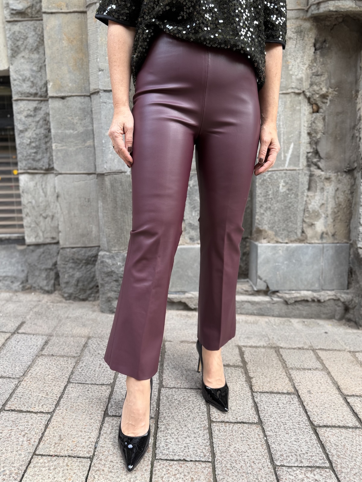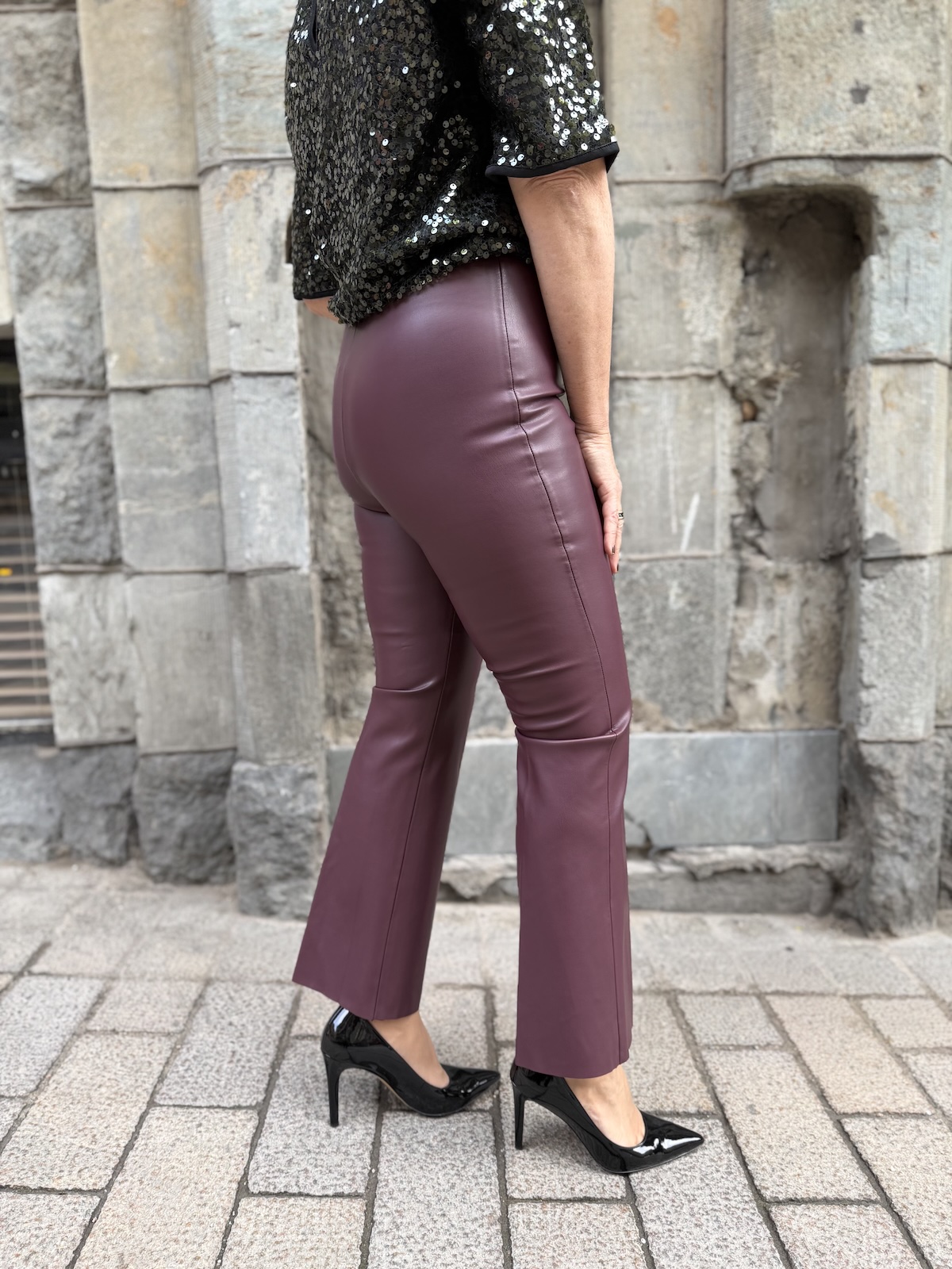Kaylee tekstiilinahkahousuissa on aavistuksen bootcut malli. Housujen vyötärö tulee reippaasti navan päälle. Vyötäröllä on kuminauha. Housut ovat istuvat ja lahkeet ovat noin nilkkamittaiset. lahkeet levenevät kevyesti alaspäin. Housut joustavat ja ovat mukavantuntuiset päällä. Housut näyttävät aidoita nahkahousuilta. Katalla on housuista päällä koko S. Nämä ovat hieman pienemmät kooltaan kun mustat samaiset Kaylee tekstiilinahkahousut.