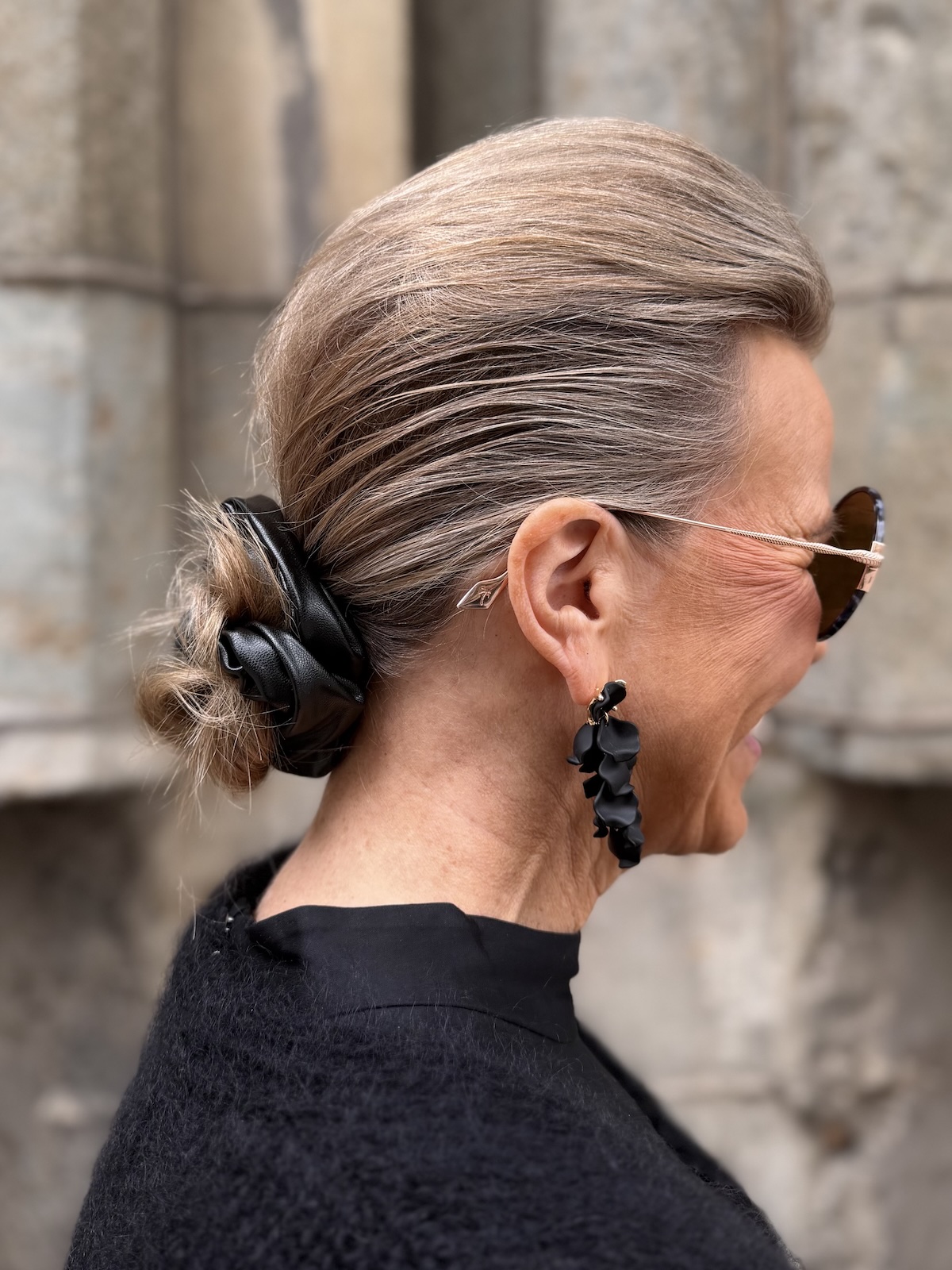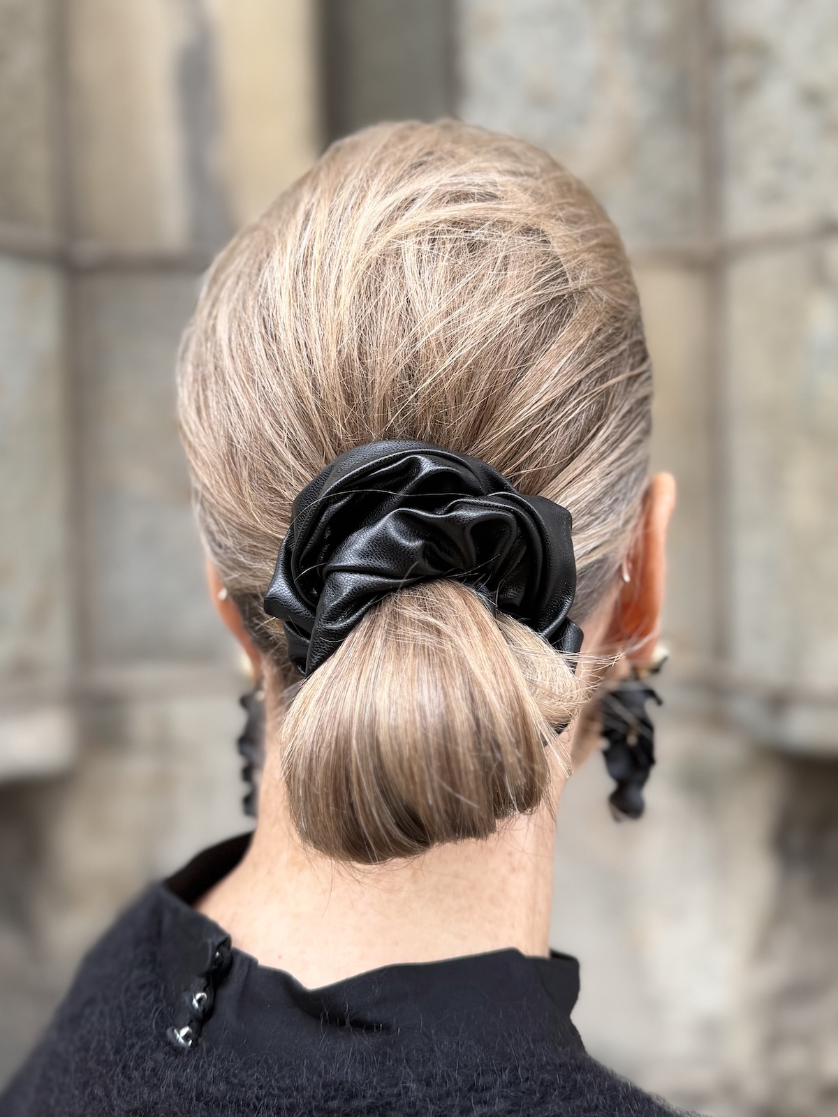 Tekonahkainen hiusdonitsi on loistava. Se kiepautetaan hiuksiin kahdesti. Hiusdonitsi pysyy liukkaissakin hiuksissa todella hyvin.