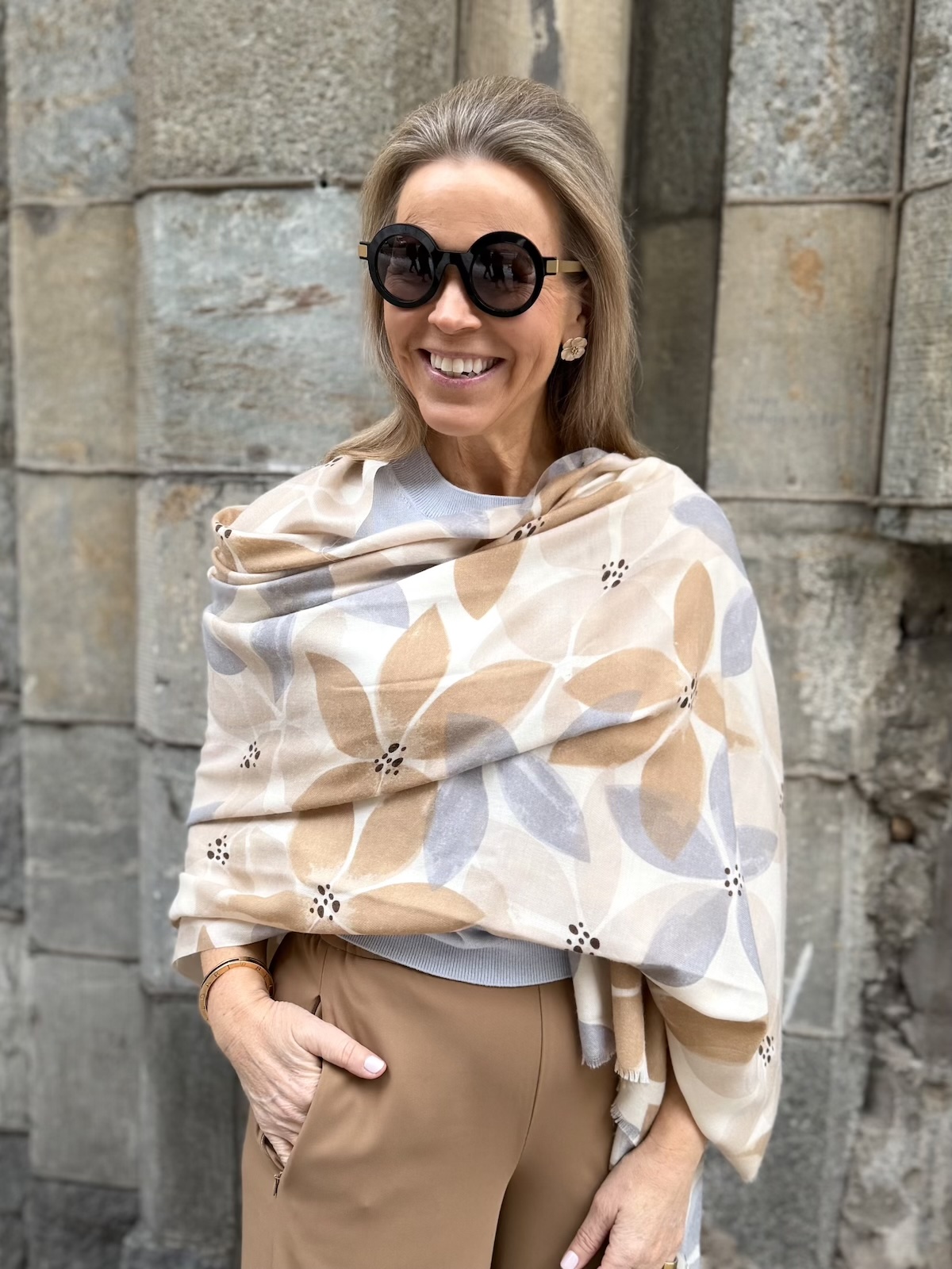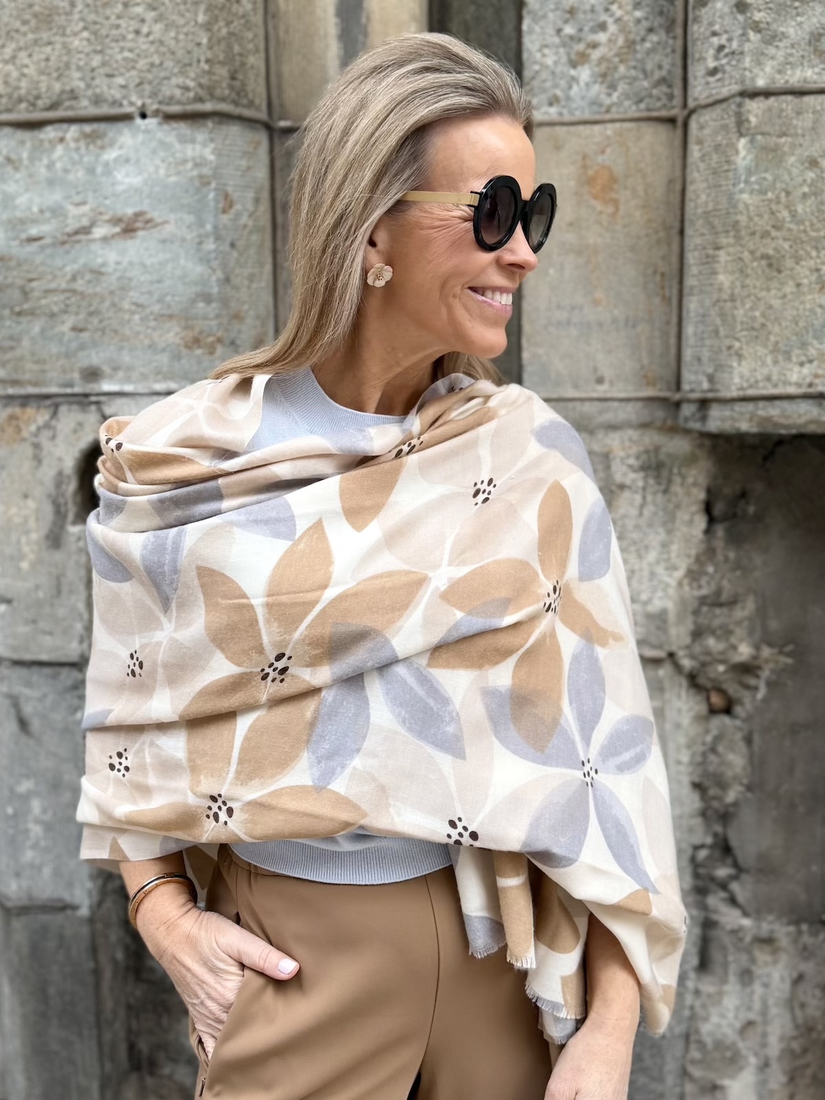 Iso kukkahuivi on pehmoinen ja näyttävä huivi, tyylikkäällä värityksellä. Huivin koko on n. 90 x 188 cm.