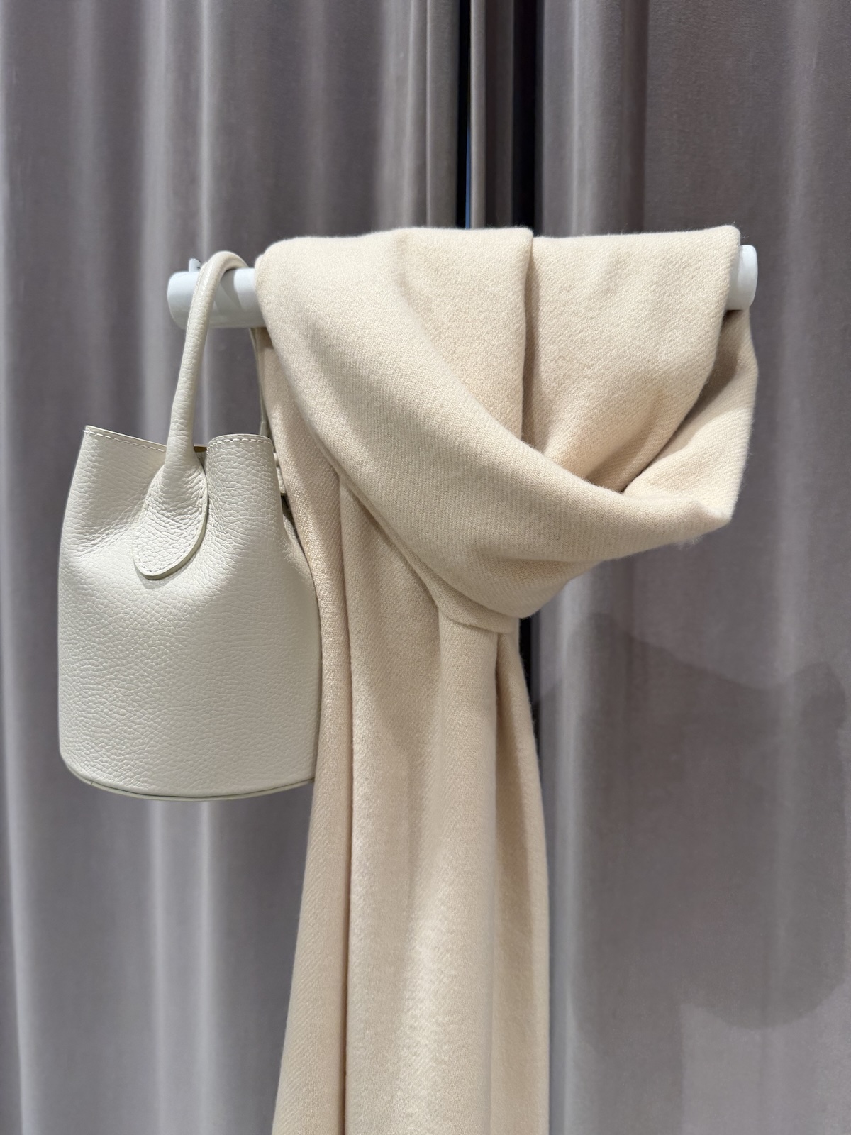 Pipaluk pasmiina huivi on super pehmoinen ja lämmin huivi. Huivi on klassisen mallinen huivi ja huivin päässä on hapsut. Huivin mitat ovat 70 x 180 cm. Sävy on pehmeä ja aavistuksen kellertävä.