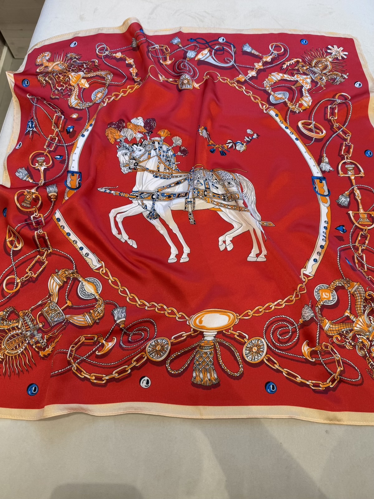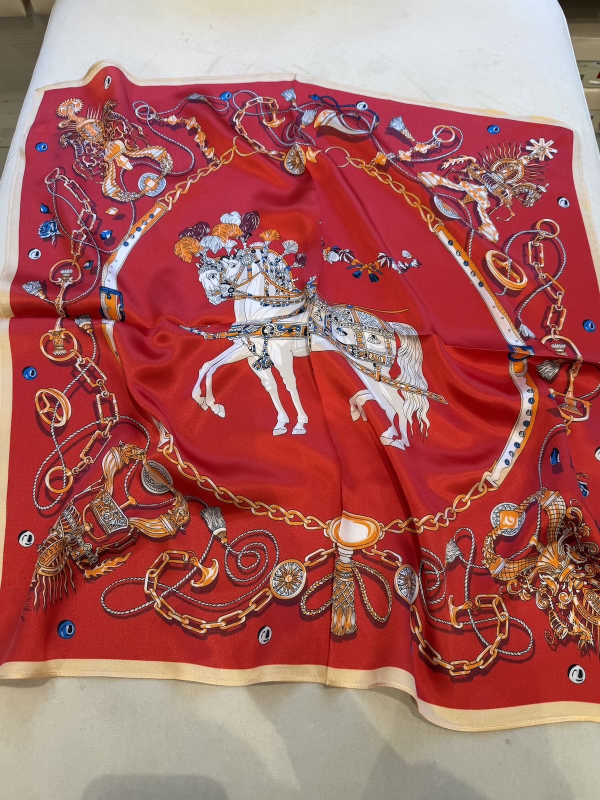 Silkkihuivi 70 x 70 cm; punainen hevonen
