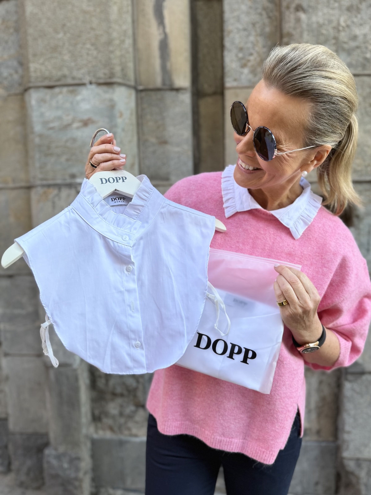 Kauluksia on yksi koko ja sen pituus edestä on 30 cm. Tämä kaulus on ihan puhtaan valkoinen. Pesu 40 astetta. Irtokaulukset on pakattu uudelleen käytettäviin DOPP pusseihin.