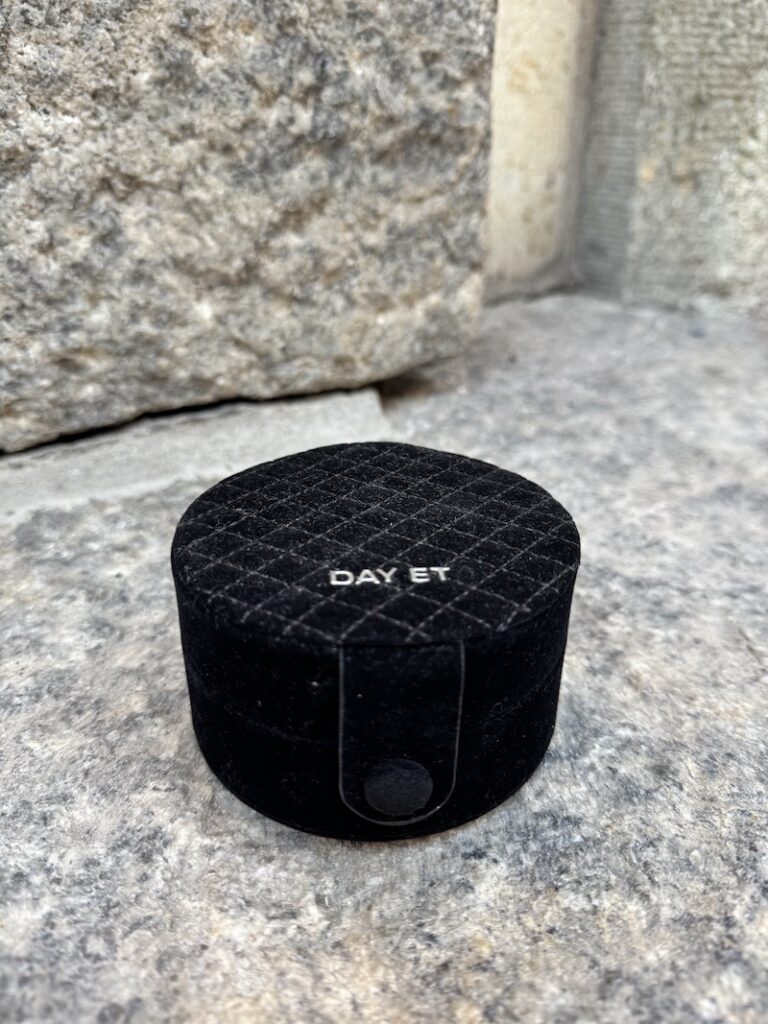 Dayn pieni korurasia on söpö. Sen voi ottaa mukaan vaikkapa matkalle. Rasian kannessa on hakaset, mihin saa laittaa kaulakorut roikkumaan. Kaulakorujen päät ja loppu ketjusta menee pussiin, joka on hakasten alapuolella. Keskellä on paikat sormuksille sekä korvakoruille. Korulippaan koko on 8 x 8 cm.