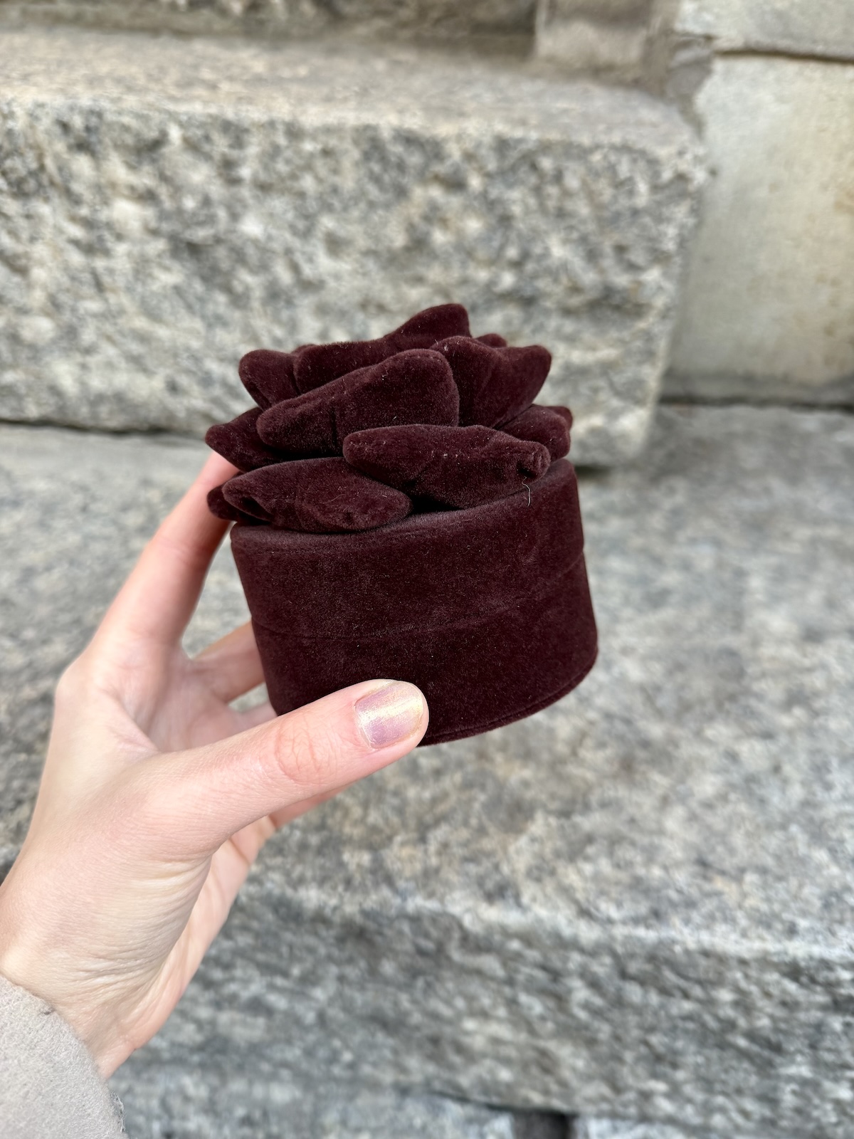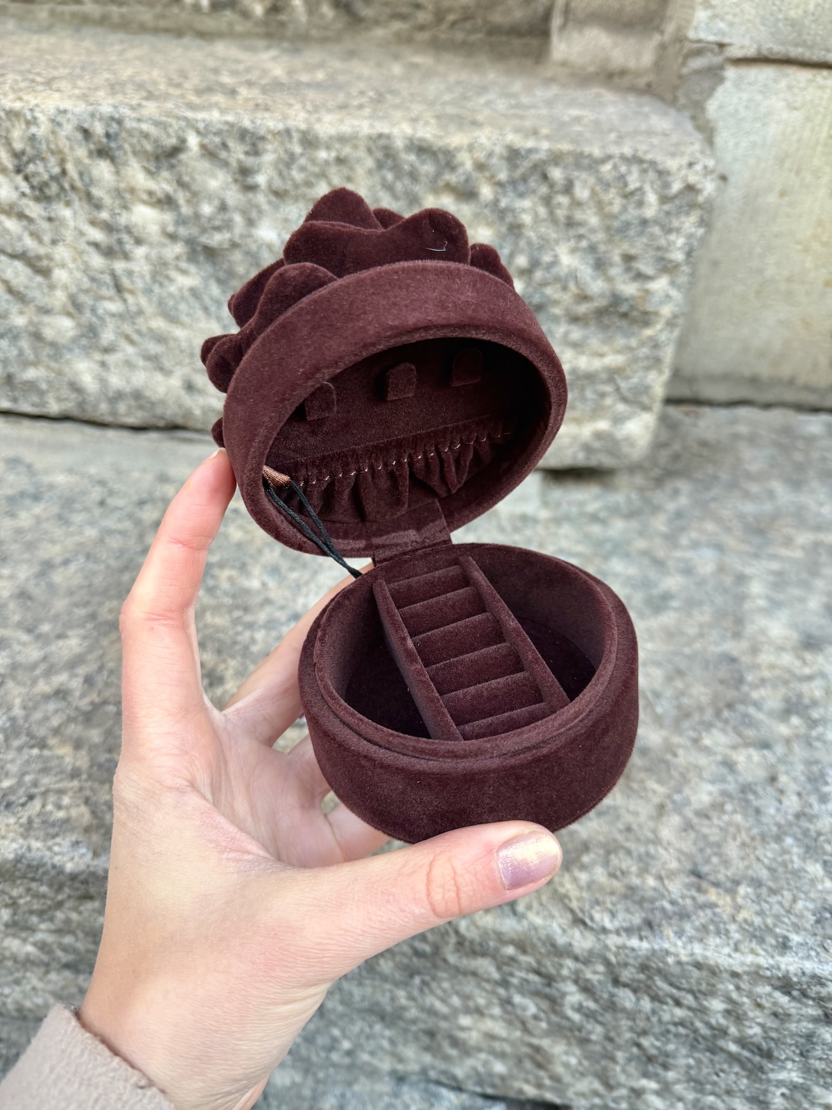Dayn korurasian päällä on kukka. Rasia on kaunis yksityiskohta pöydällä. Korurasiassa on paikat sormuksille, korva- sekä kaulakoruille. Korurasian halkaisija on 9 cm ja korkeus 5 cm. Korurasia kukalla toimii myös mukana matkoilla.