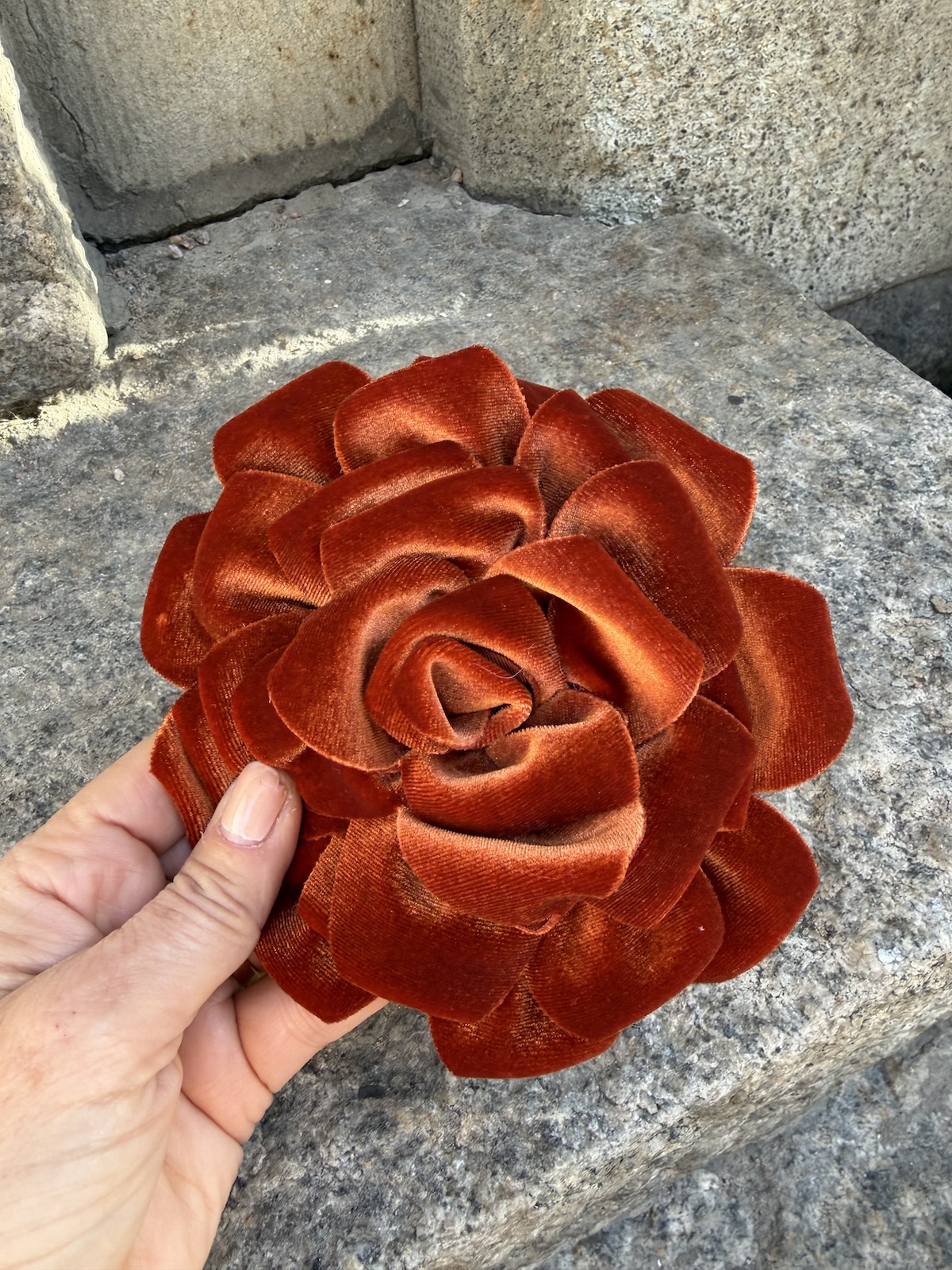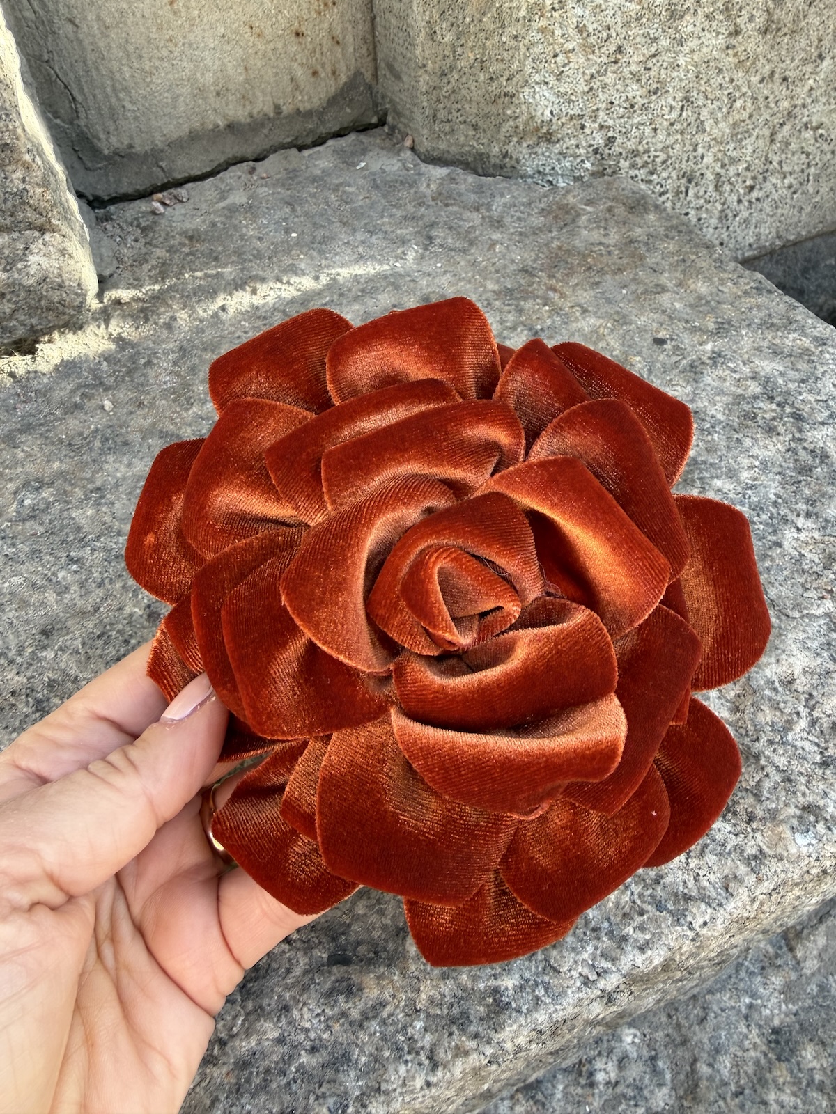Iso kukka on näyttävä! Kukan takana on hakaneula sekä pinni eli kukan voi laittaa rintaan/vyötärölle/hiuksiin jne. Kukan läpimitta on 16 cm.
