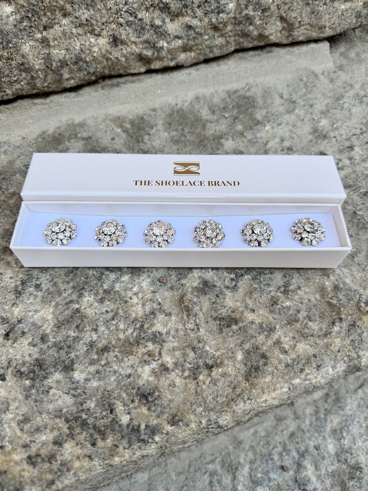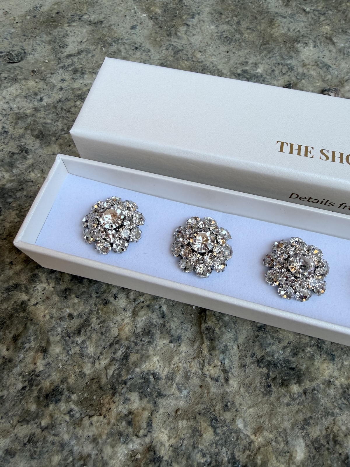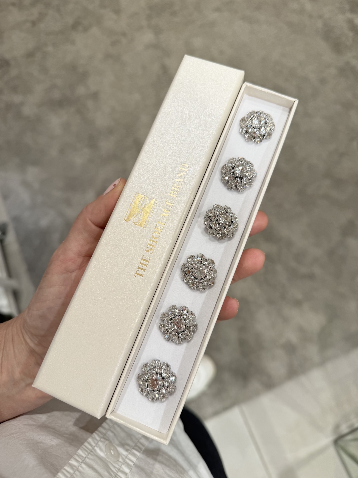 Nappikorut ovat super hauska idea! Niillä saa kivasti ilmettä paitapuseroihin, myös juhlavaan menoon. Klipsu avataan korun toiselta puolelta ja pujotetaan napin alapuolelle ja napsastaan kiinni. Huomioi, että nappikoru on kunnolla kiinni, kun kuuluu selkeä napsahduksen ääni. Nappikoru Olivian halkaisija on 2 cm. Pakkauksessa on 6 kpl. nappikoruja.