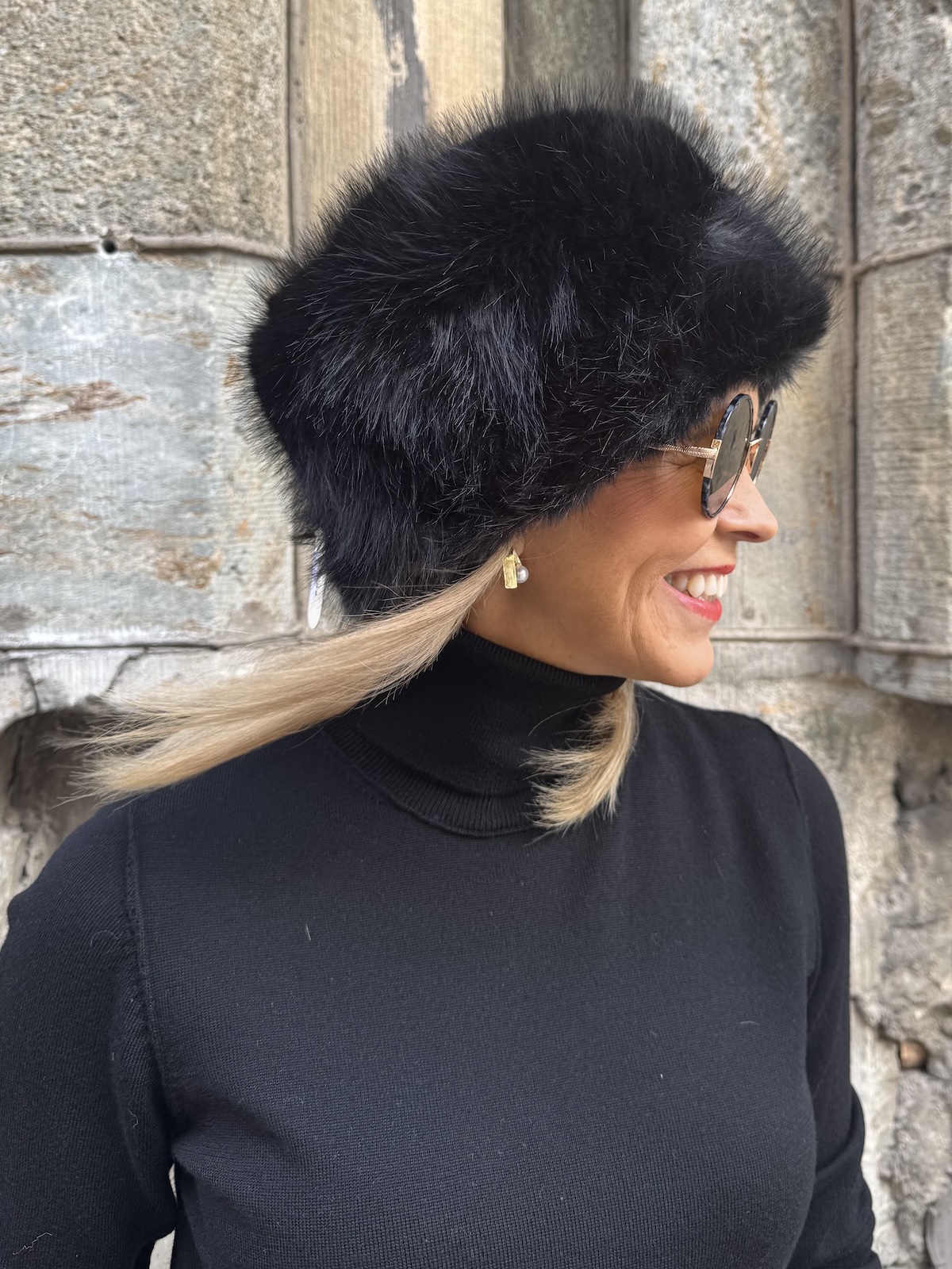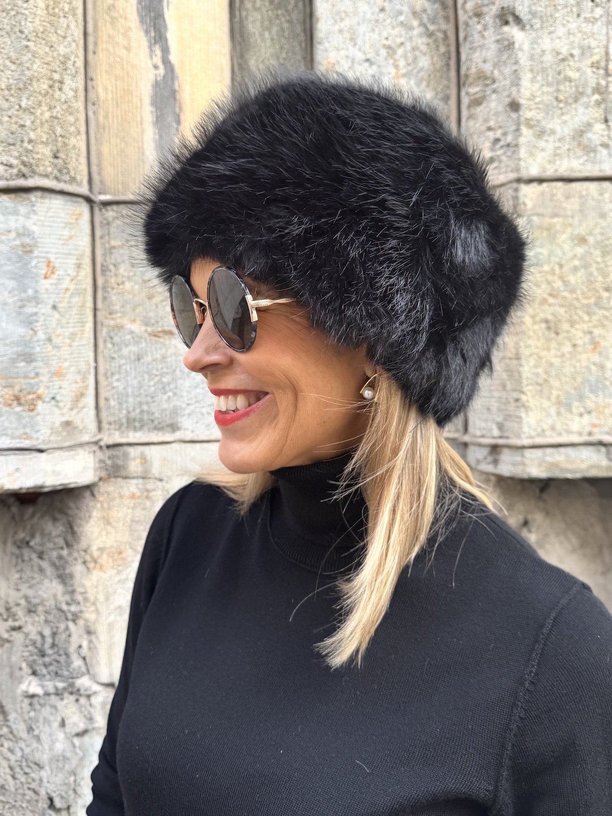 Anais tekoturkishattu on pehmoinen ja materiaali on laadukasta tekokarvaa. Hattu on ilmava päässä ja hatun koko on yhtä kokoa ja se sopii noin 55-57 kokoiselle päälle. Minulla on 56 kokoinen pää ja itselleni se on ihan pikkuisen löysähkö eli juuri sopivan kokoinen.
