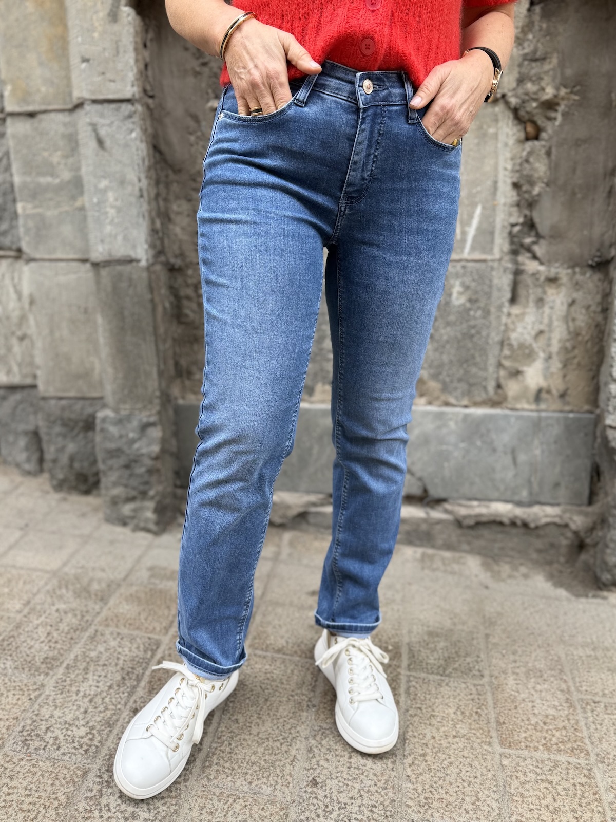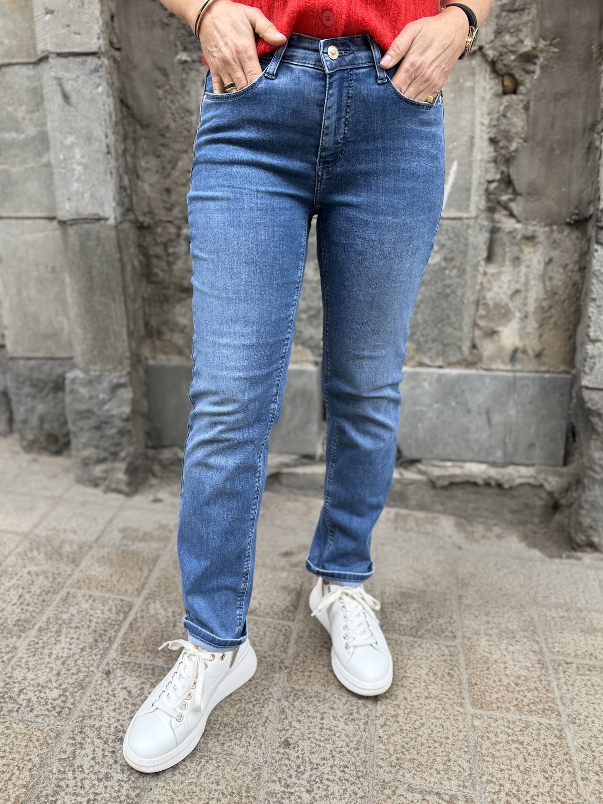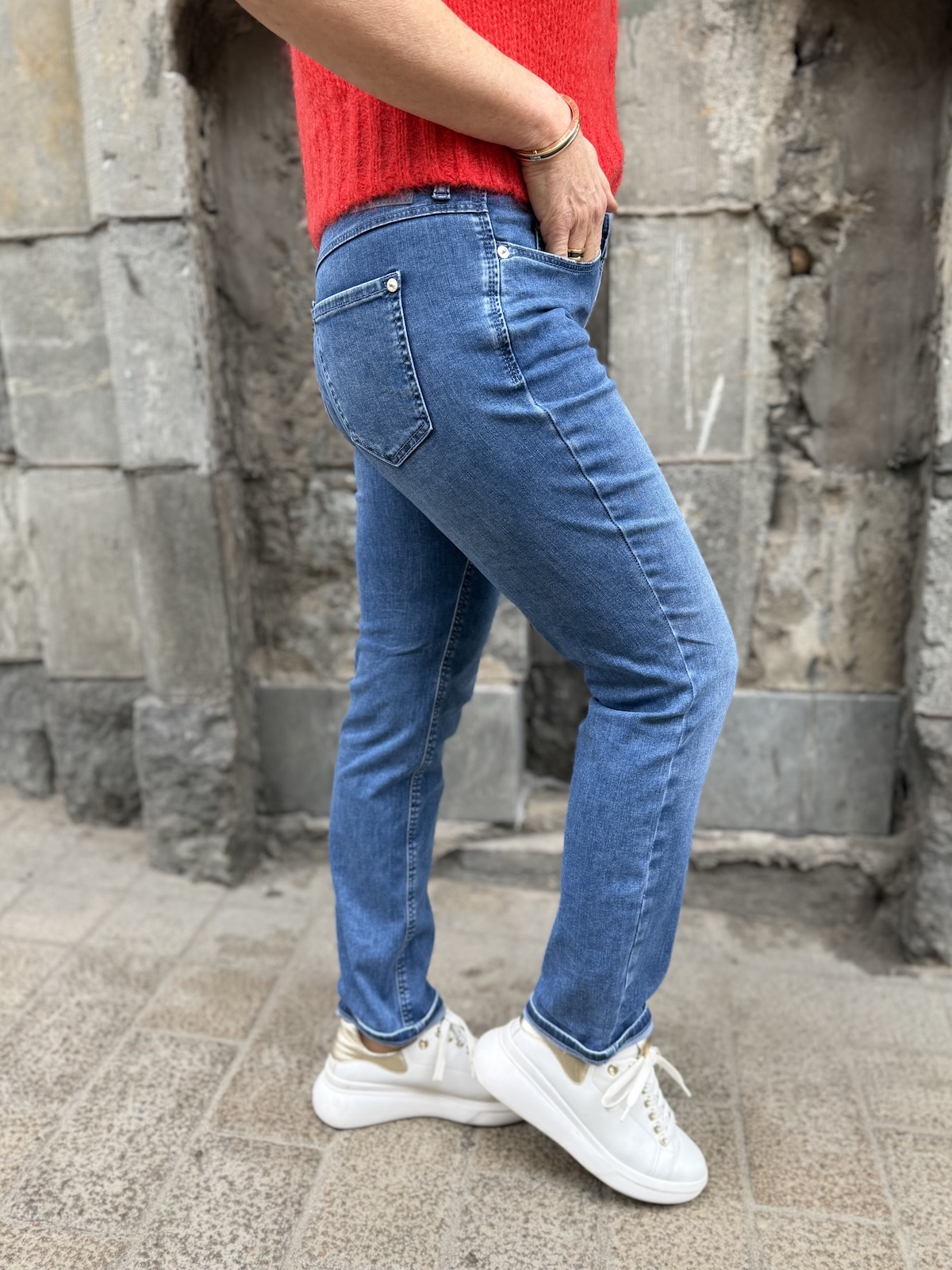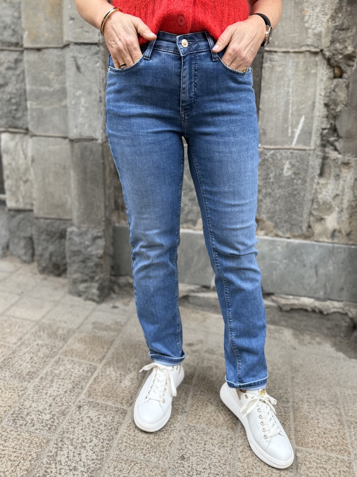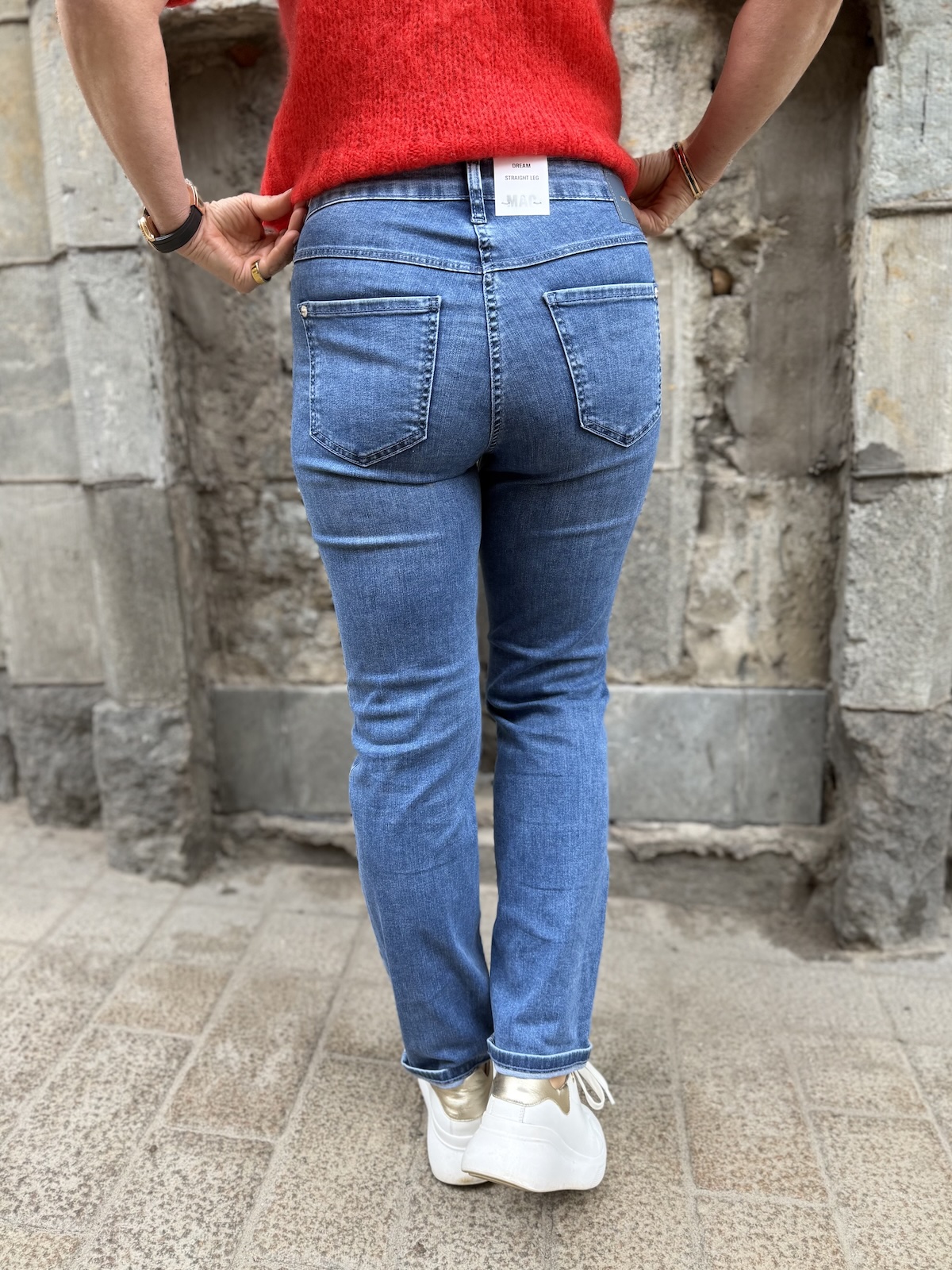 Dream cropped farkut ovat uusi malli Dream perheeseen. Näiden farkkujen materiaali on pehmoista ka ns. kesälaatua ja lahkeiden mitta on 27″ pienellä käänteellä. Farkut ylettyvät edestä juuri navan päälle ja selkäpuolelta ne nousevat hieman korkeammalle. Farkut ovat istuvat ylhäältä ja reisistä ja polvien jälkeen lahkeet ovat suorat. Katalla on farkuista päällä koko 34 ja Gabi käyttää farkuista kokoa 36.
