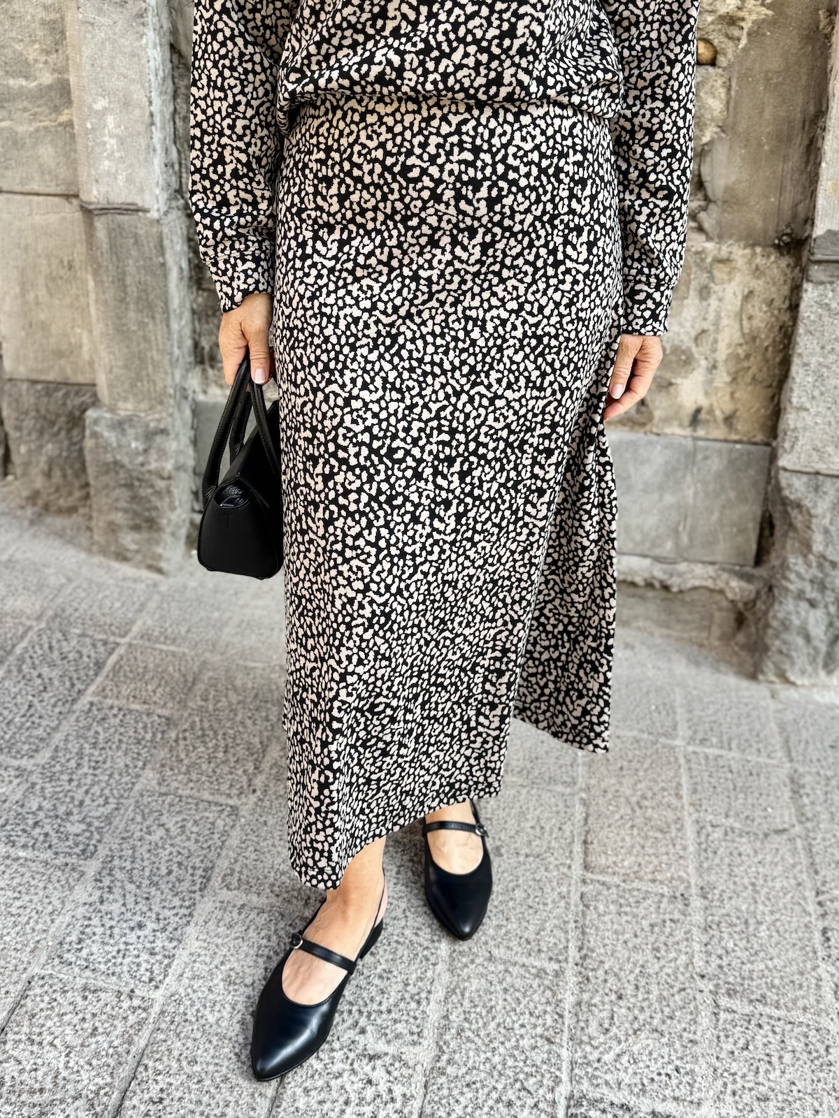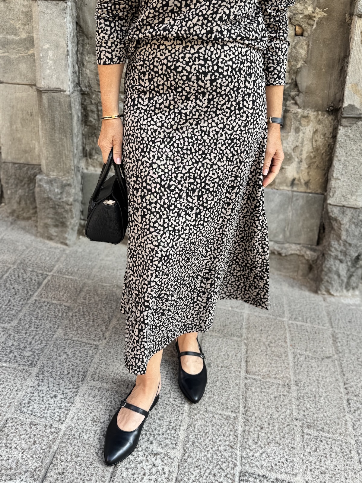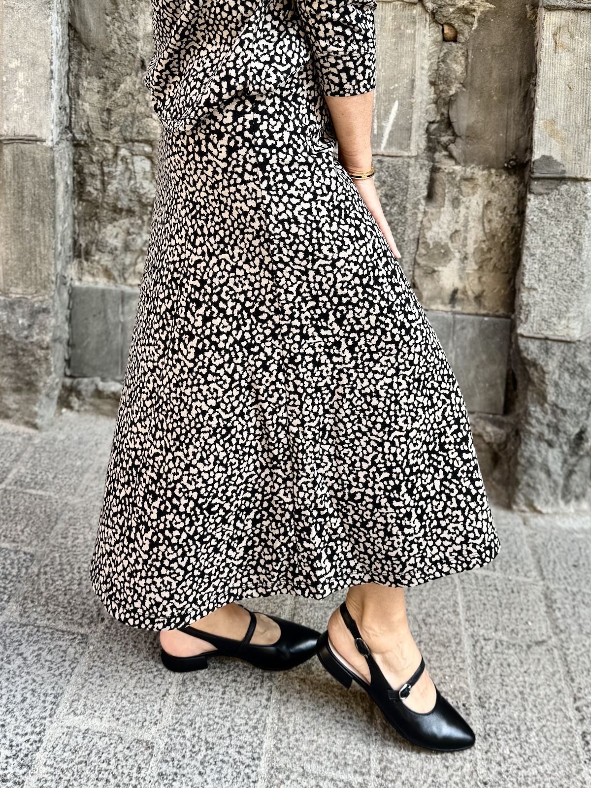 Bopha mihihame on joustavaa ja pehmoista materiaalia eli hyvin vastaavaa kuin ”Pumpulia iholle” oleva materiaali on. Hameessa on vyötäröllä leveä kuminauha ja malliltaan hame on alaspäin levenevä ja se loppuu lähelle nilkkoja. Minulla on hameesta päällä koko XS.