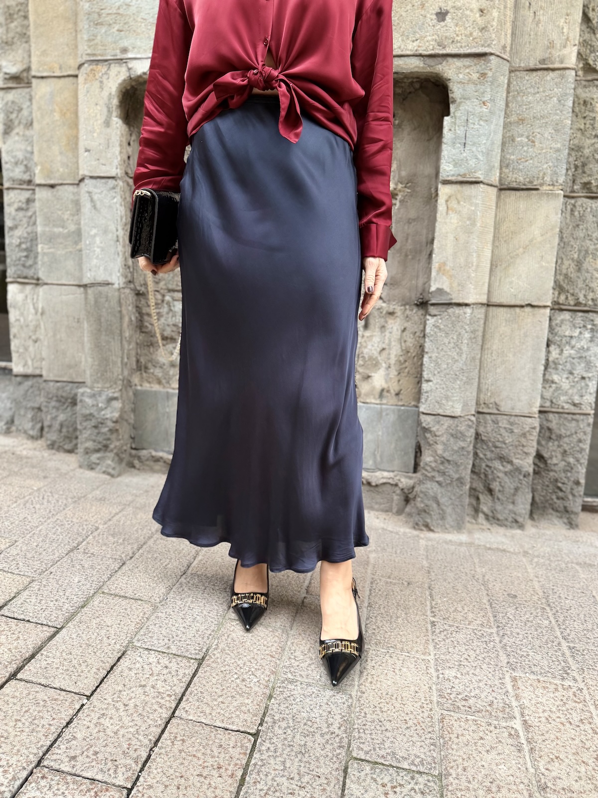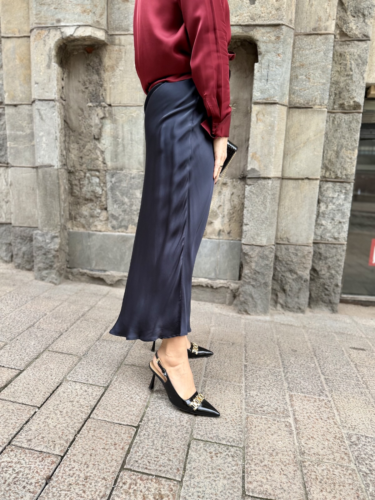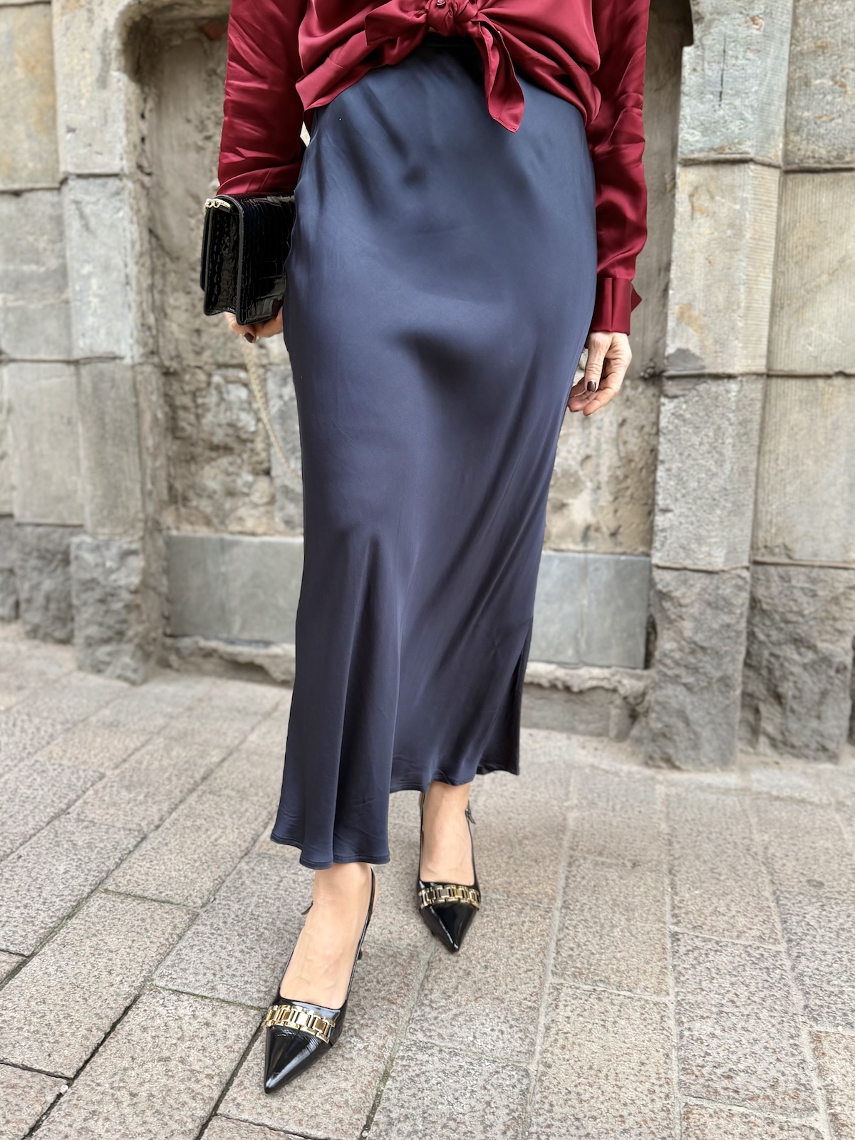 Laurina satiininen midihame; tummansininen