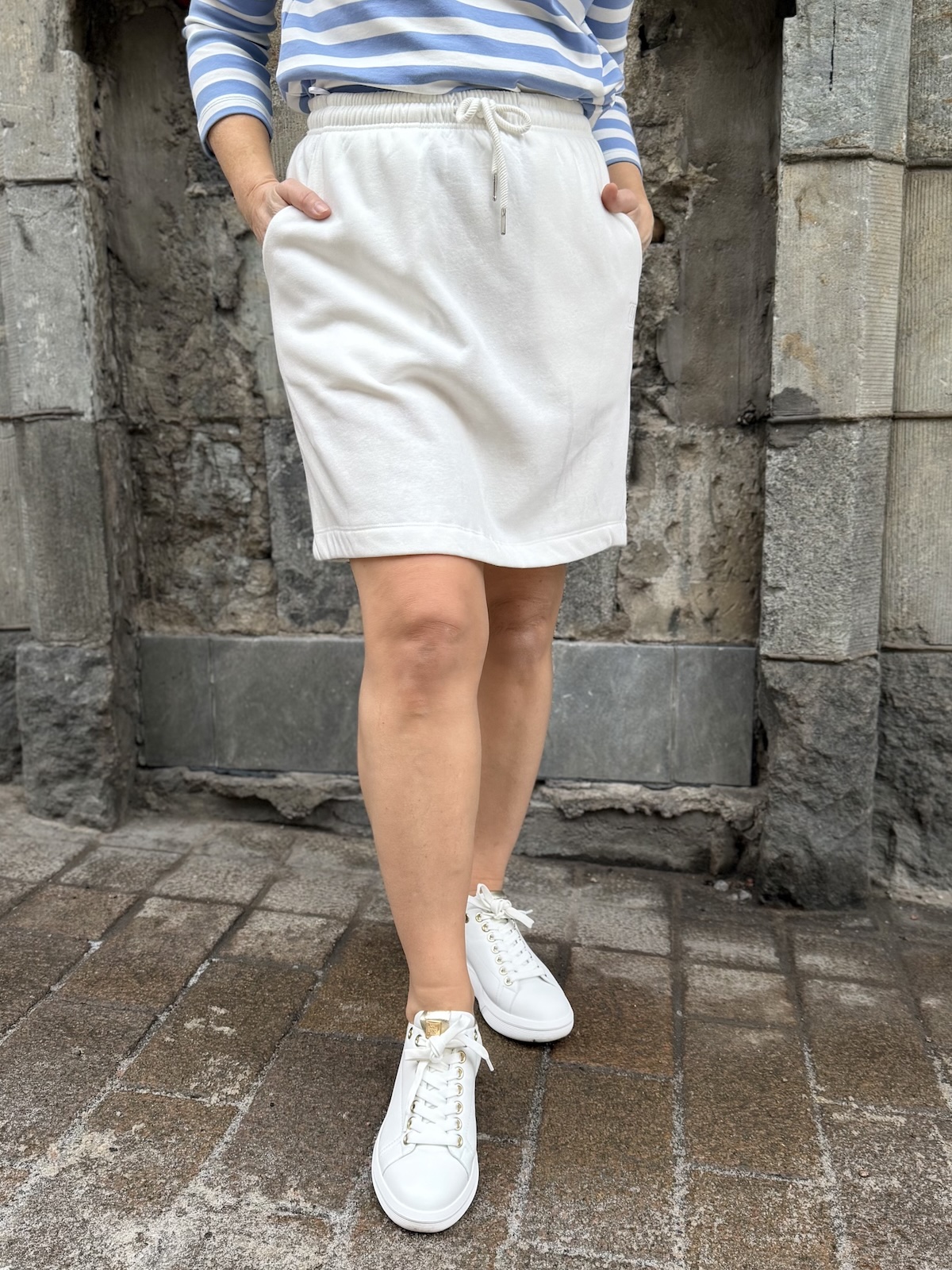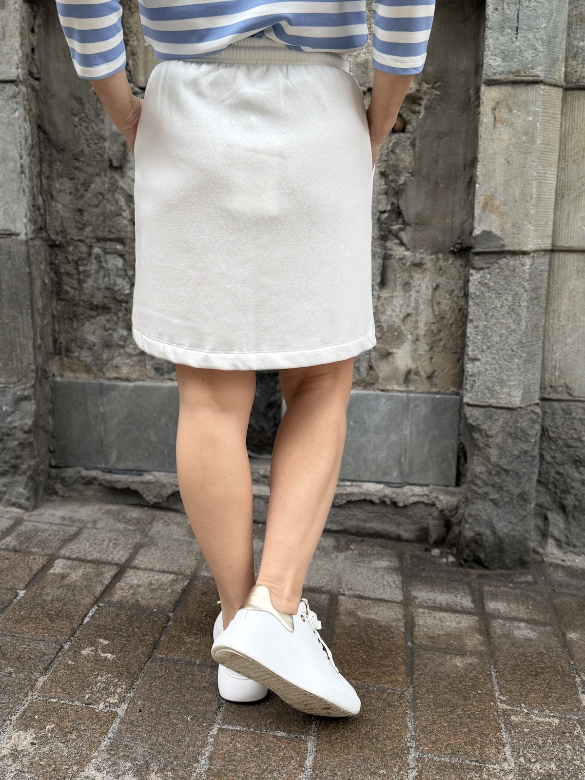Rolanda on helppo ja kiva, rento collegehame. Hameessa on leveähkö kuminauha vyötärö, joka on suht napakkaa. Hameen lantion kohta on hieman pyöristetty ja hame ylettyy polvien yläpuolelle. hameen sisäpinta on pehmoinen. hameen sivuissa on taskut. Katalla on hameesta päällä koko S.