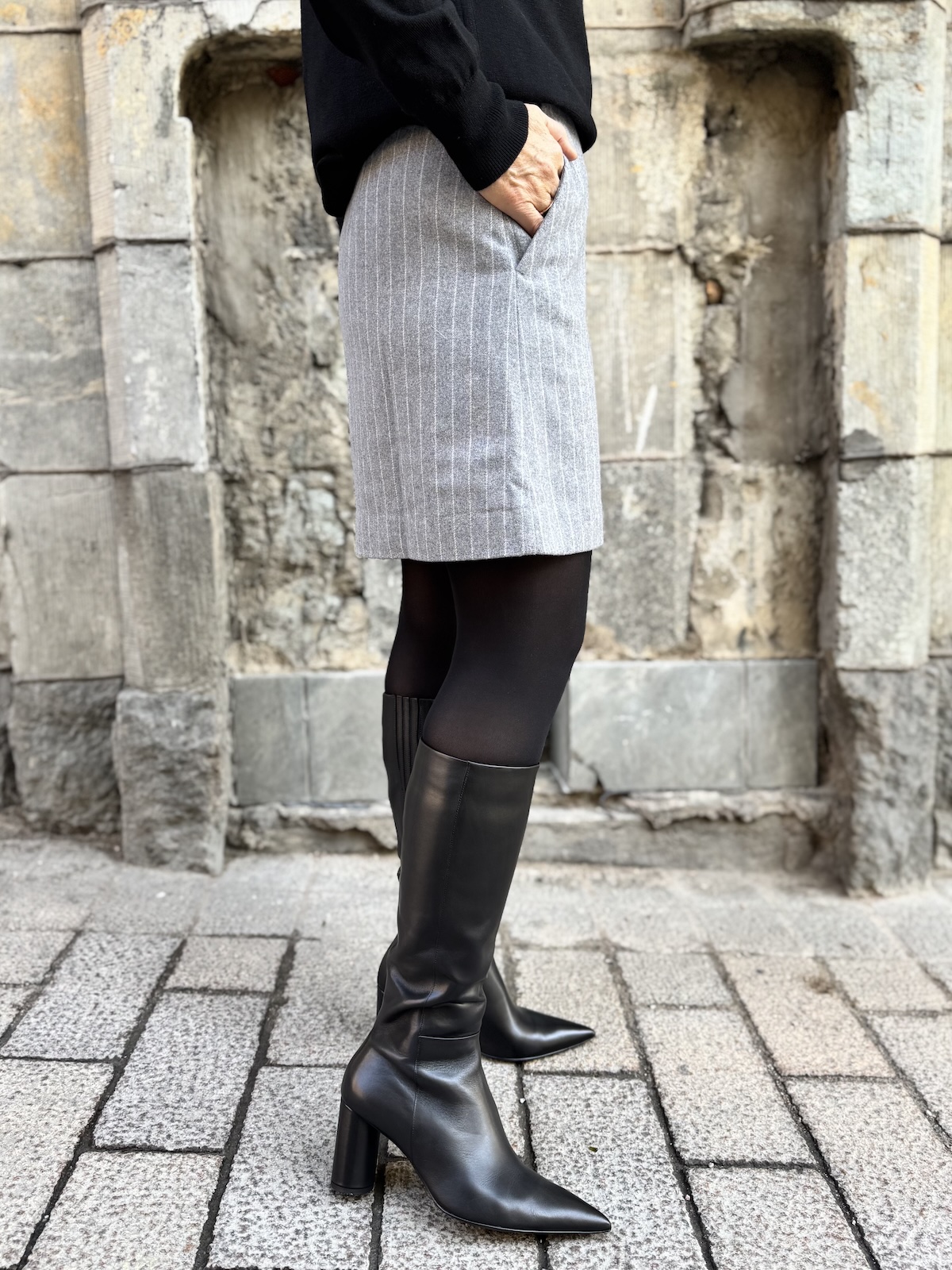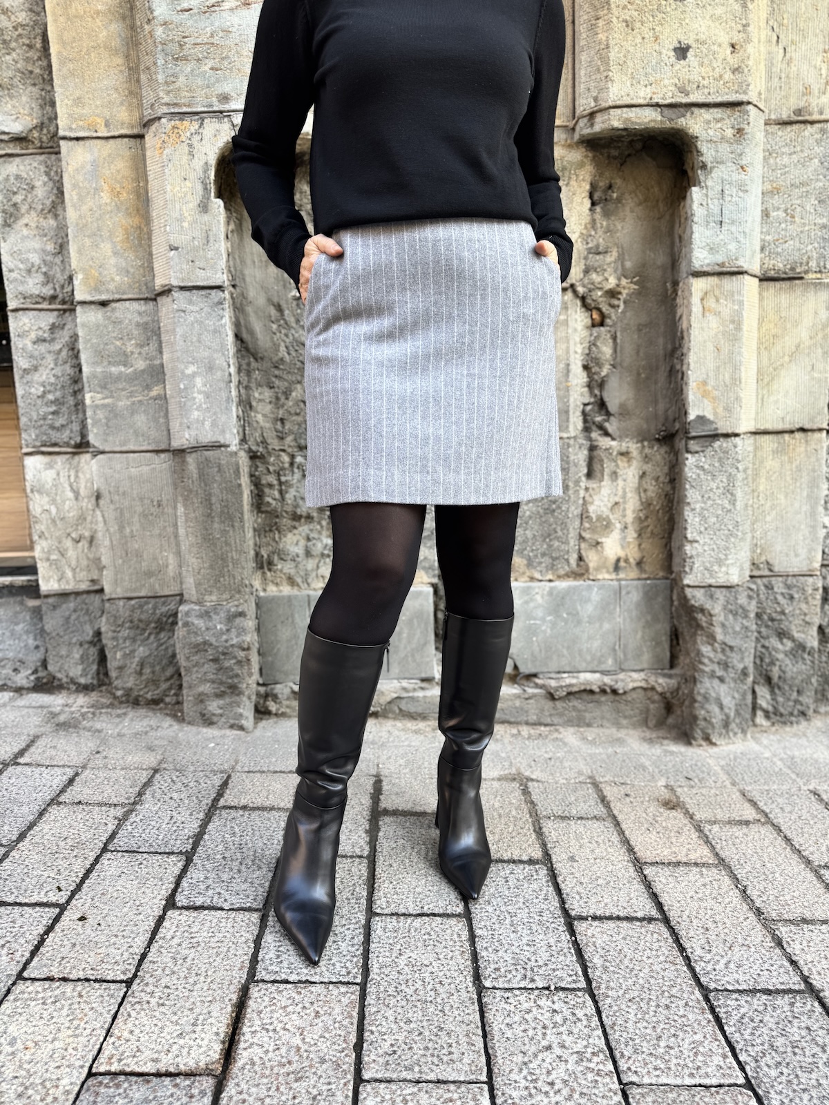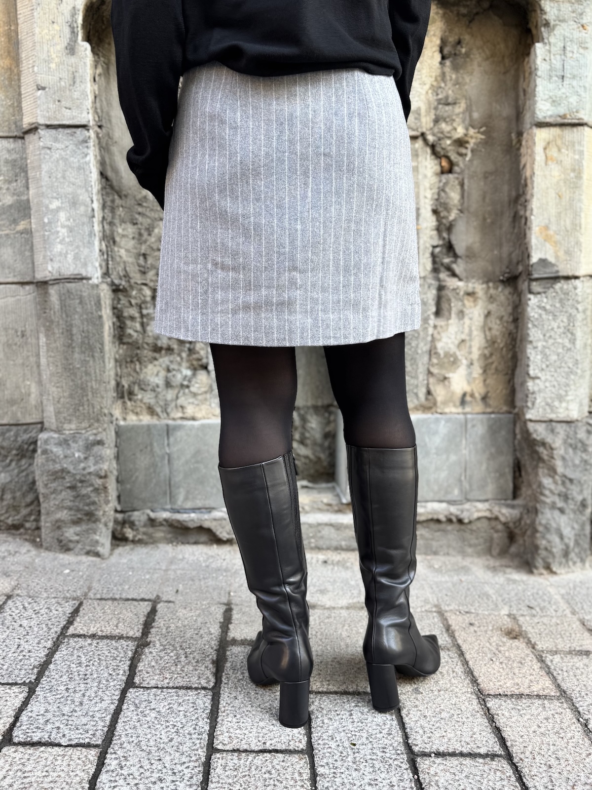 Sisse on pehmoinen ja tyylikäs viilakangashame. Hameessa on vuori. Piilovetoketju on toisessa sivussa. Hameen sivuissa on taskut. Malliltaan hame on suora ja se loppuu polvien yläpuolelle. Katalla on hameesta päällä koko 36. Hame saa pikkaisen tipahtaa vyötärön kapeimman kohdan alapuolelle, koska hameessa ei ole erillistä vyötärönauhaa.