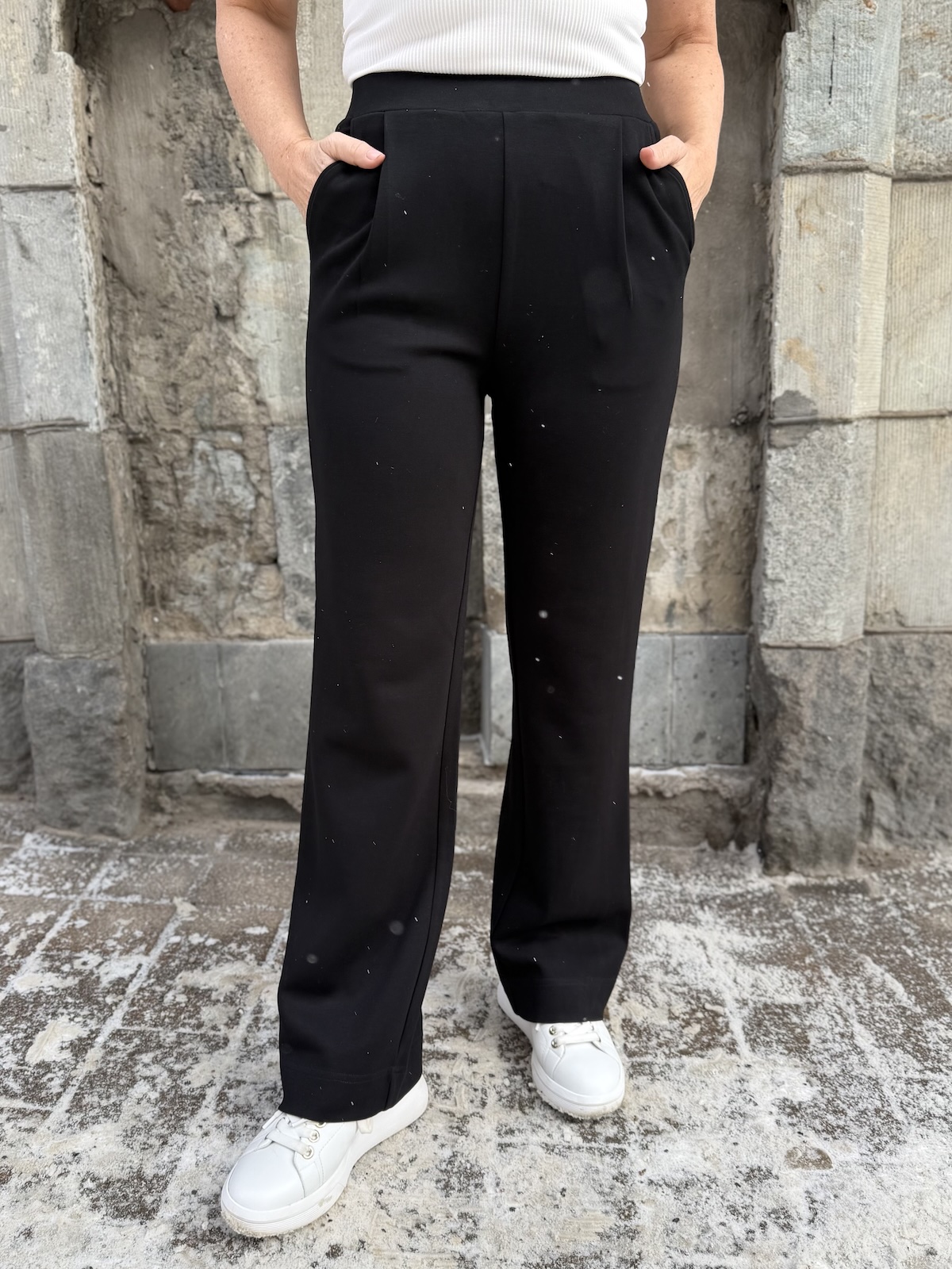 Marigold kuuluu ihanaan ”Pumpilia iholle” olevaan sarjaan. Housuissa on leveä kuminauhavyötärö. Edessä on pari vekkiä ja sivuissa on taskut. Lahkeet ovat ihan suorat ja täyspitkät. Takana ei ole taskuja. Katalla on housuista päällä koko XS (valkopippurin värisistä housuista koko S). Yhdistä housut saman sarjan Marigold paitaan ja saat tyylikkään setin.