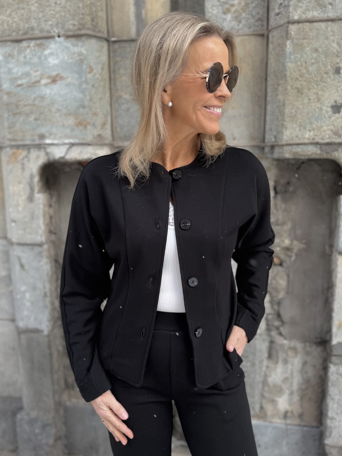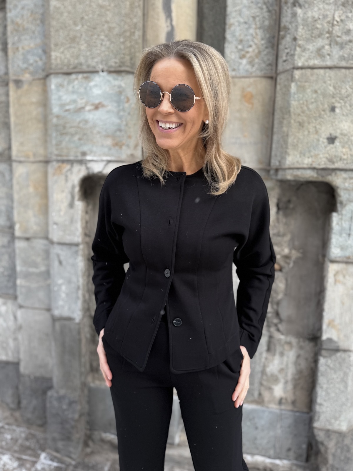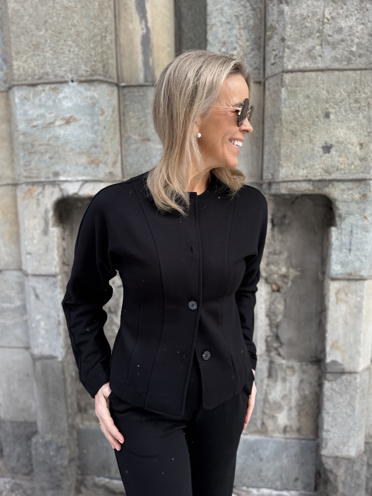 Marigold sarja kuuluu ihanaan ”Pumpulia iholle” olevaan sarjaan. Jakku on vuoreton eli konepestävä 30 asteessa. Jakussa on O-kaula-aukko ja malliltaan se on kauniisti slimmattu. Hihat ovat jakussa pitkät ja jakun edessä on napit. Jakku ylettyy lantiolle. Jakkua voi pitää kiinni, paidan tavoin tai auki toppien ja mekkojen päällä. Katalla on jakusta päällä koko XS. Suosittelemme jakusta normaalia kokoa.