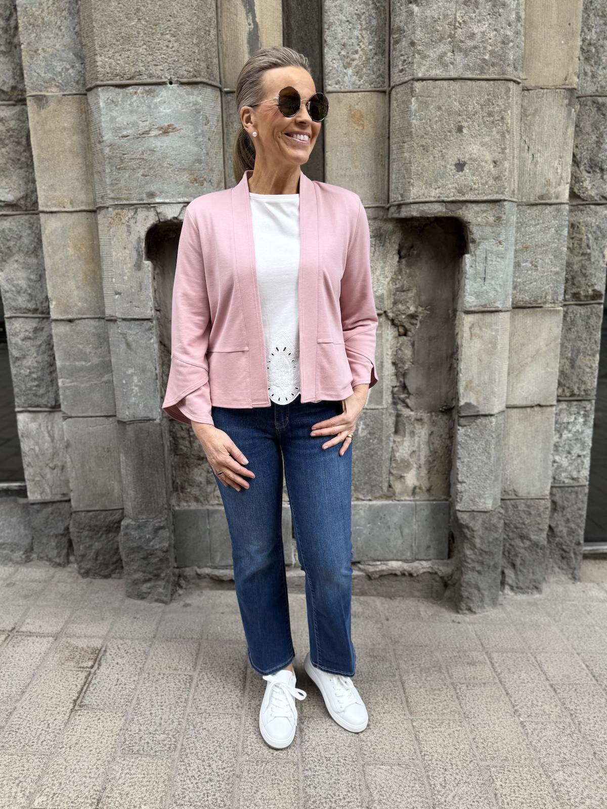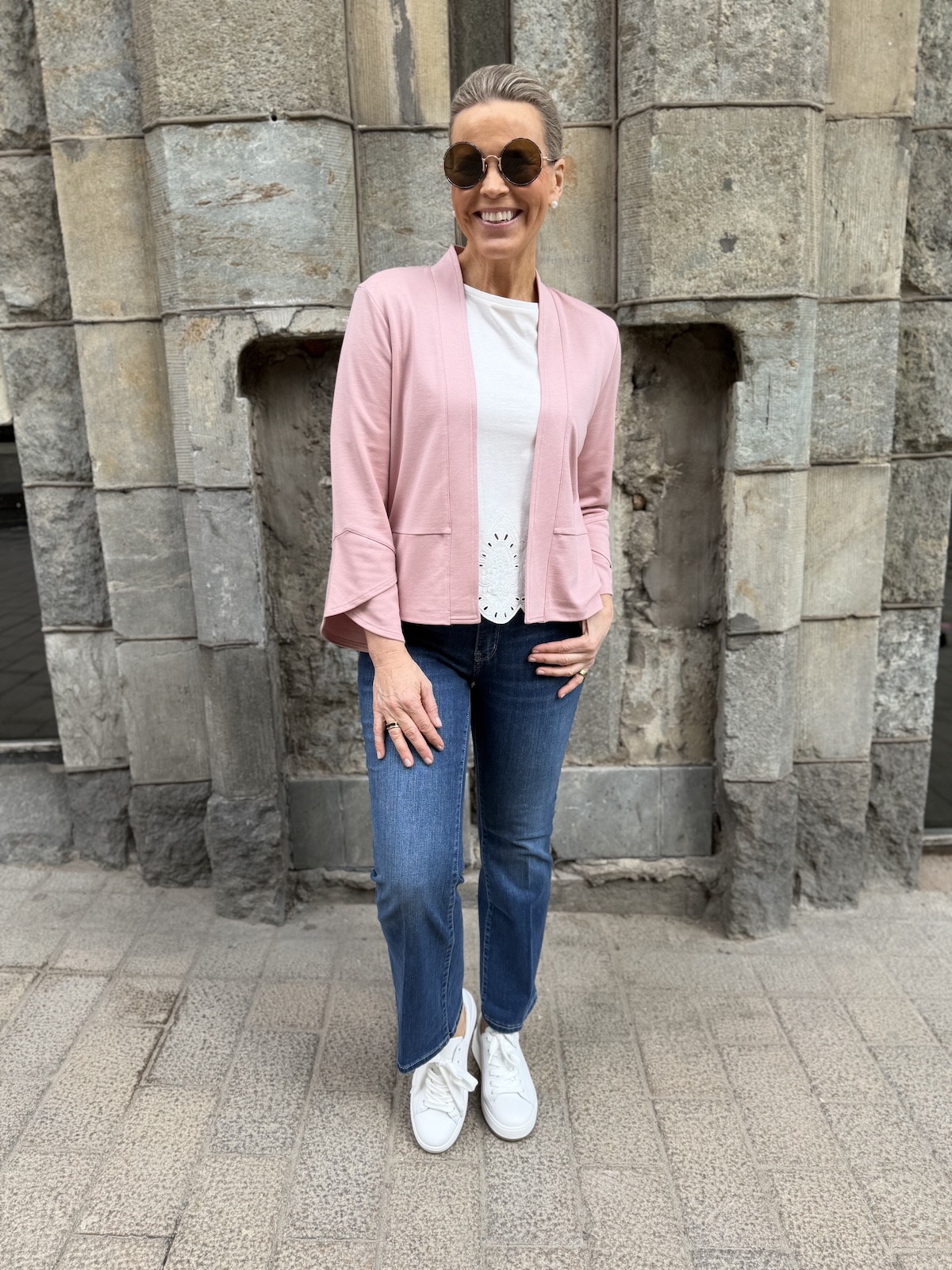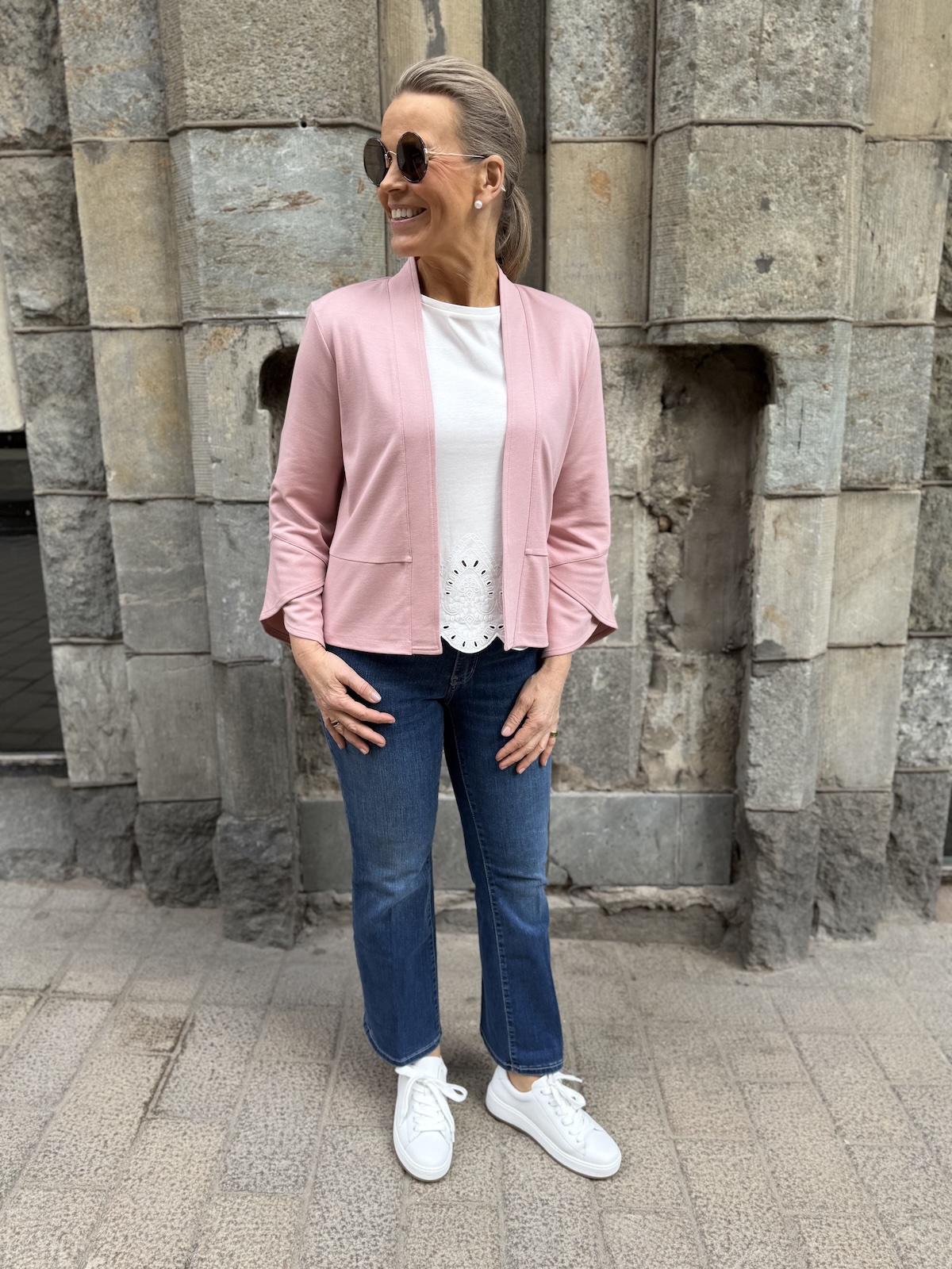 Annina on vuoreton ja kevyt jersey tyylinen jakku. Jakku on boleromainen eli siinä ei ole edessä nappeja. Jakun kaulus on kaunis, shaalimainen ja malliltaan jakku on suora. Hihat ovat löysähköt ja hihansuissa on kaunis leikkaus. Hihat ovat aavistuksen vajaamittaiset. Jakku ylettyy lantiolle. Katalla on jakusta päällä koko 36. Jakku vastaa normaalia kokoa.