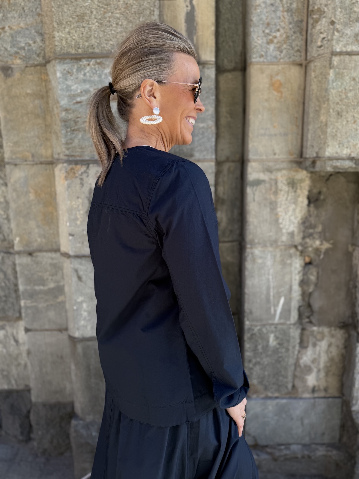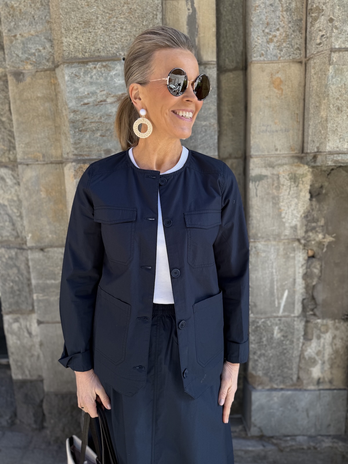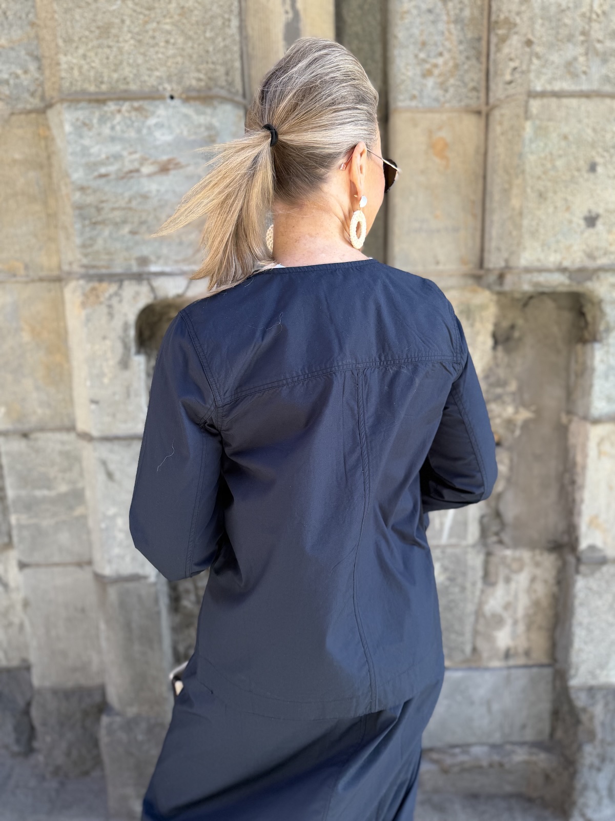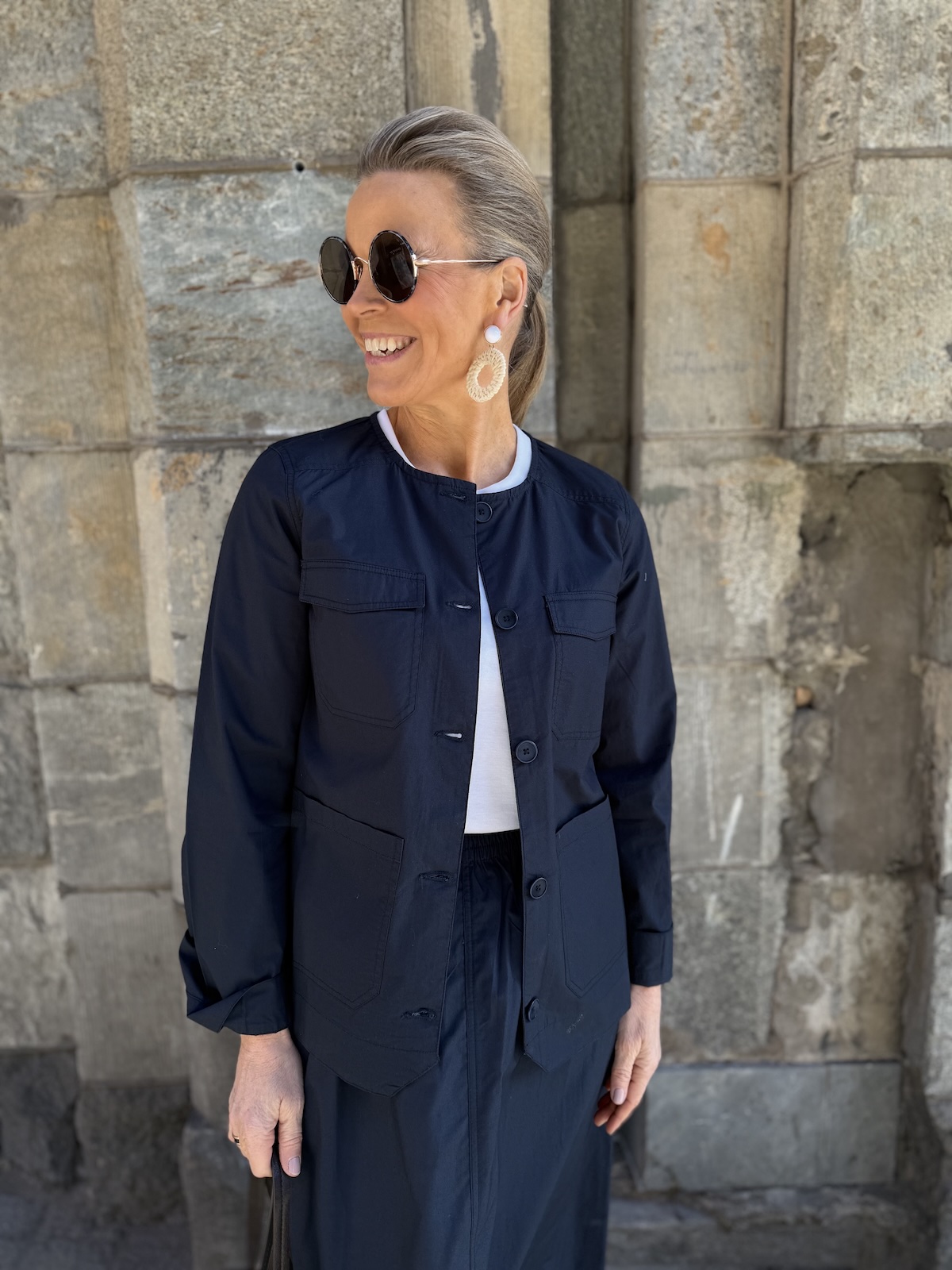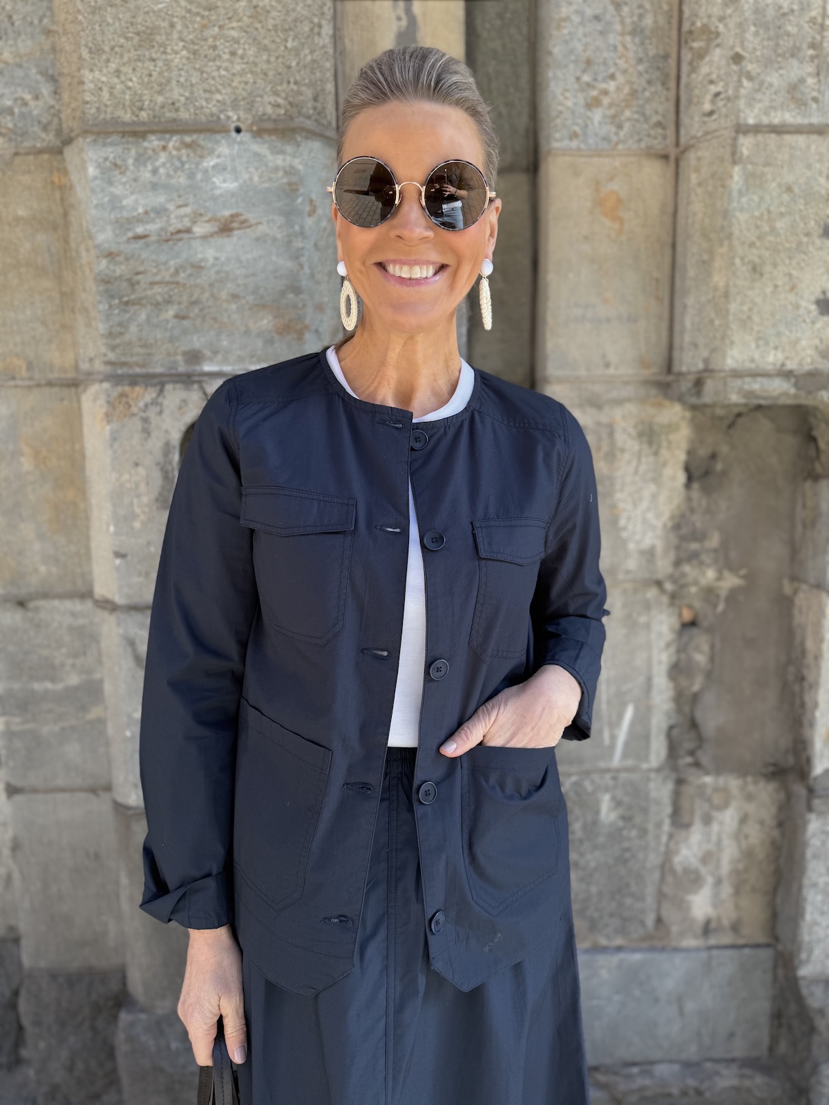 Azira on vuoreton puuvillainen pusakka/jakku. Pusakassa on O-kaula-aukko ja edessä on napit. Hihat ovat täyspitkät ja hihansuissa on kantit ja nappi. Pusakassa on rintataskut, jotka ovat huomaamattomat sekä kaksi paikkataskua. Malliltaan pusakka on suora ja se loppuu lantiolle. Katalla on pusakasta päällä koko 34. Pusakka on yhden koon reilumpaa kokoa kuin normaalisti.