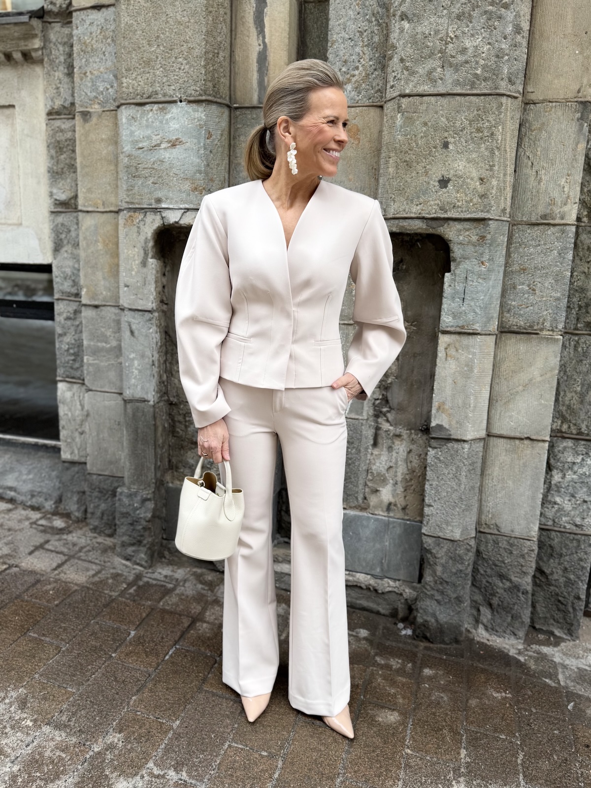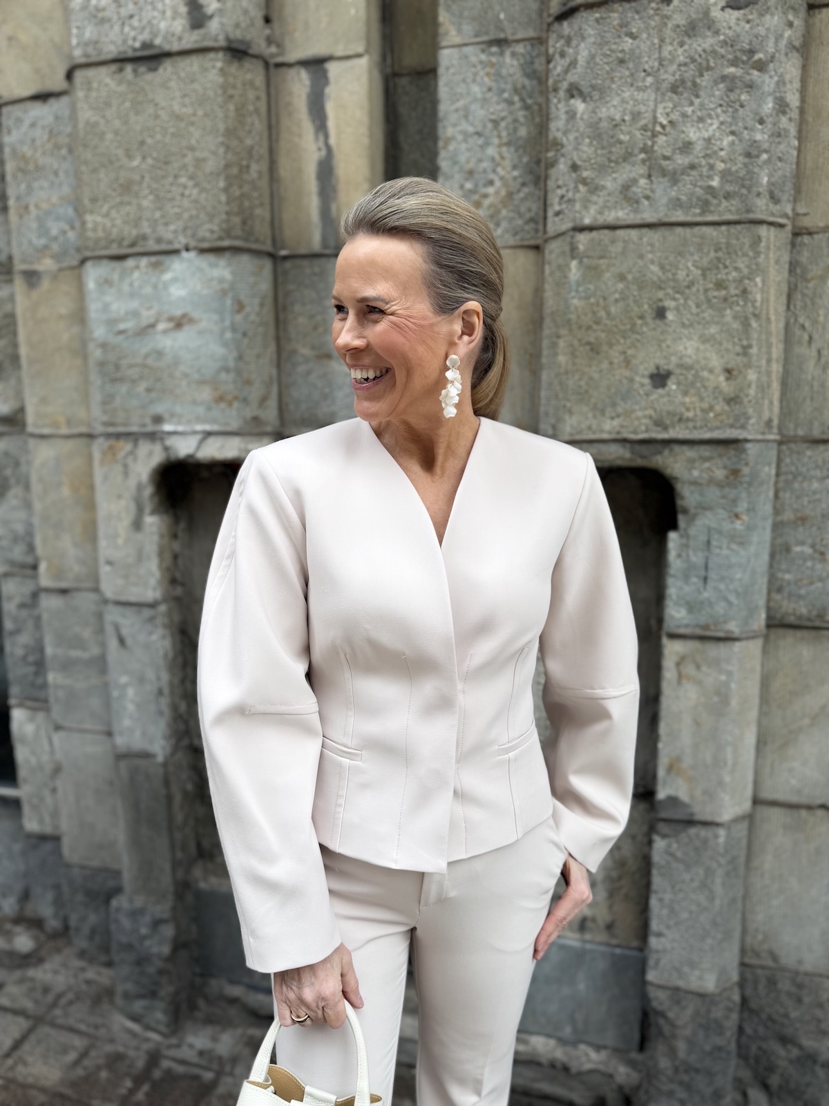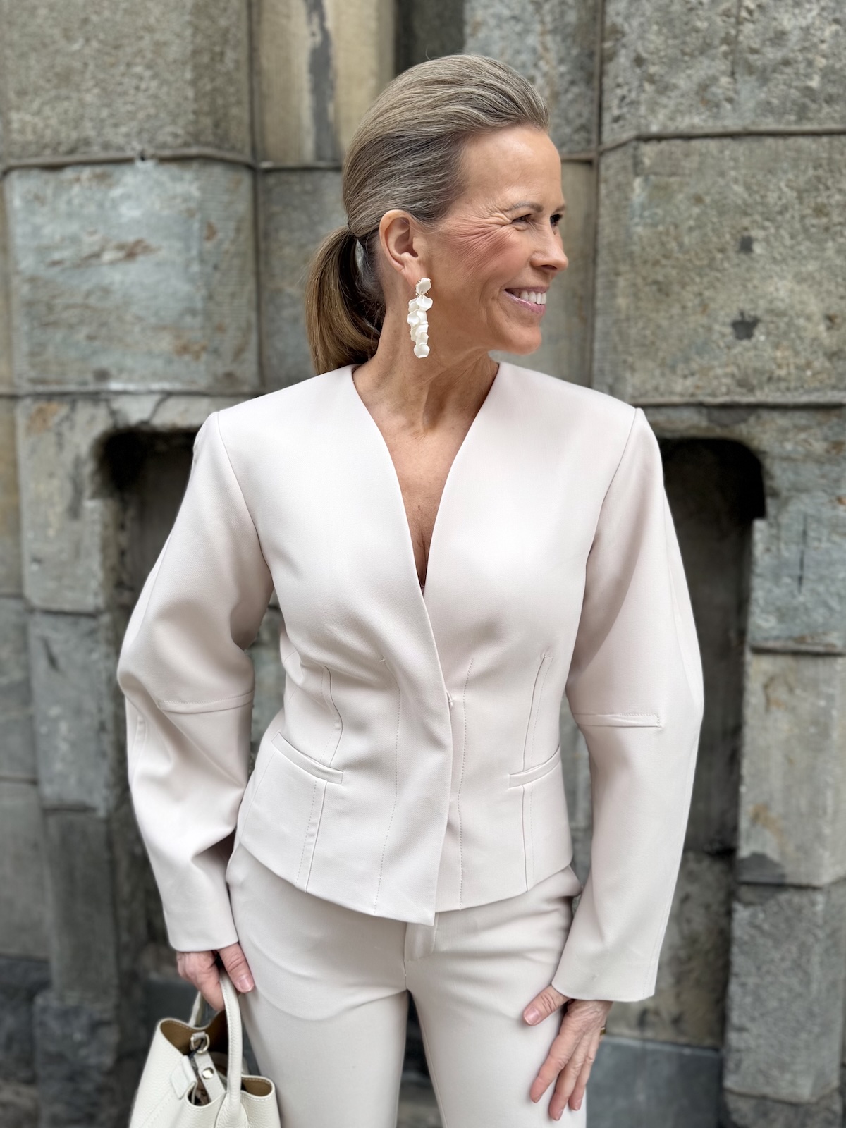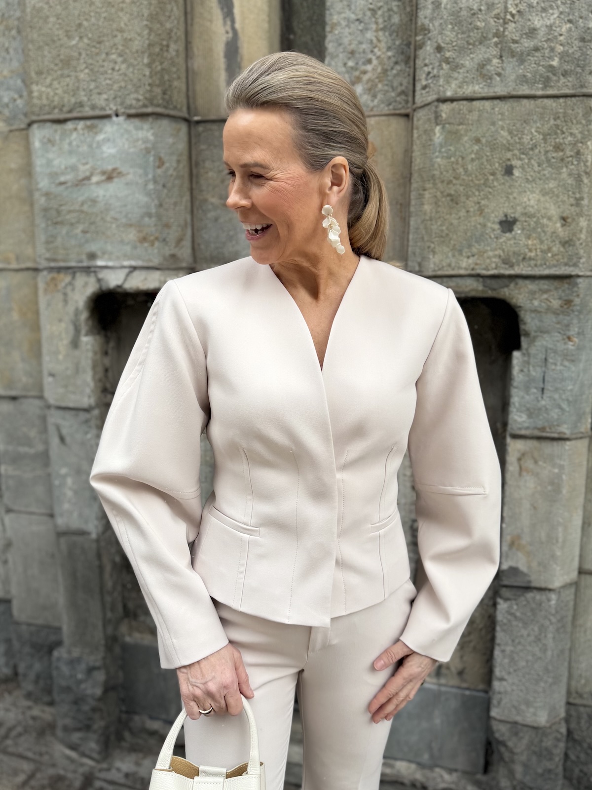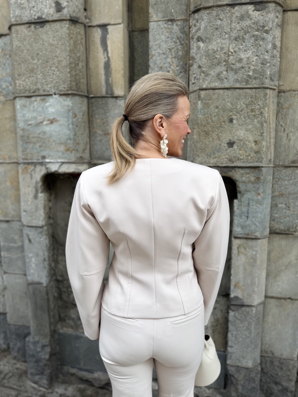 Chayce jakku on upea jakku! Jakussa on kaunis V-kaula-aukko. Edessä on kaksi isoa ja tukevaa nepparia, millä jakun saa kiinni. Hihat on hieman pyöristetty ulkosaumoista joka tekeekin jakusta näyttävän. Vyötärön kohta on slimmattu, mikä sopii jakun ja hihojen malliin täydellisesti. Jakku ylettyy lonkkaluiden alapuolelle. Jakussa on vuori. Jakku toimii myös auki. Katalla on jakusta päällä koko 36. Näin hän saa jakun loistavasti myös kiinni.