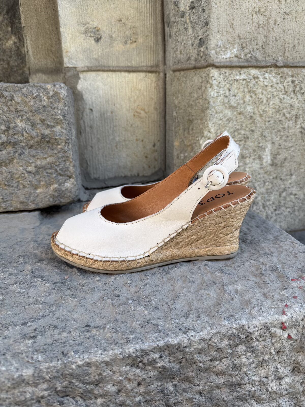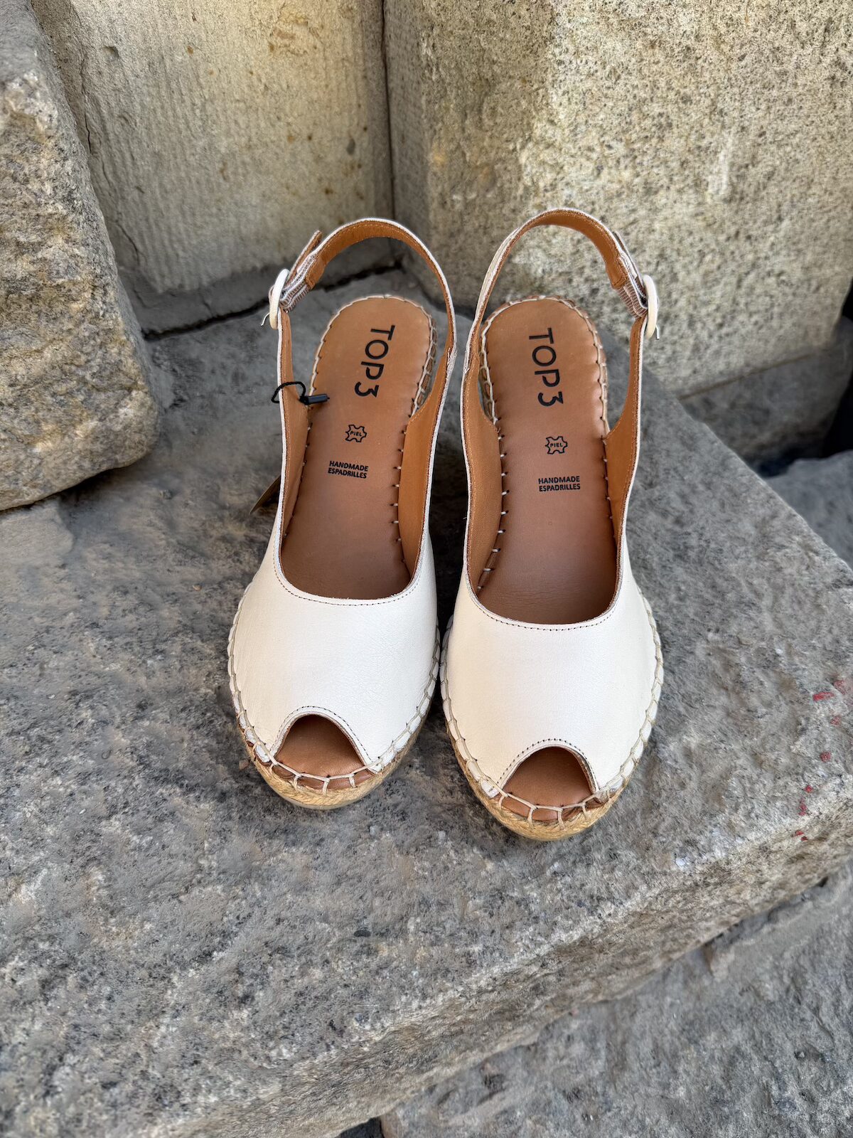 Iris wedget ovat super pehmoiset niin pohjasta kuin että niissä on myös pehmoinen pintanahka. Wedgeissä on pieni avonainen kärki, joista varpaat eivät tule kokonaan esille. Kantapään takana olevaa remmiä voi säätää. Wedget vastaavat täysin normaalia kokoa.